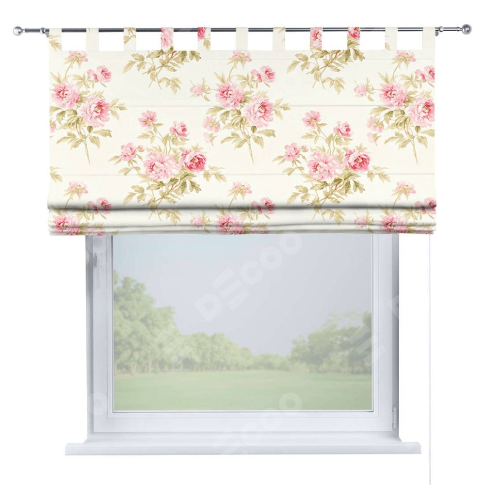 Римская штора производителя «Cortin», используется для проёма, пошита из ткани блэкаут с нанесением сублимационной печати «Английский шебби-шик». Данная модель пошита на петлях, комплектуется на выбор круглым карнизом и подходит для монтажа на стену. Римская штора на петлях имеет простую систему регулировки высоты, отличительным преимуществом данной модели является простой способ монтажа. Достаточно повесить ее на трубу и штора готова!