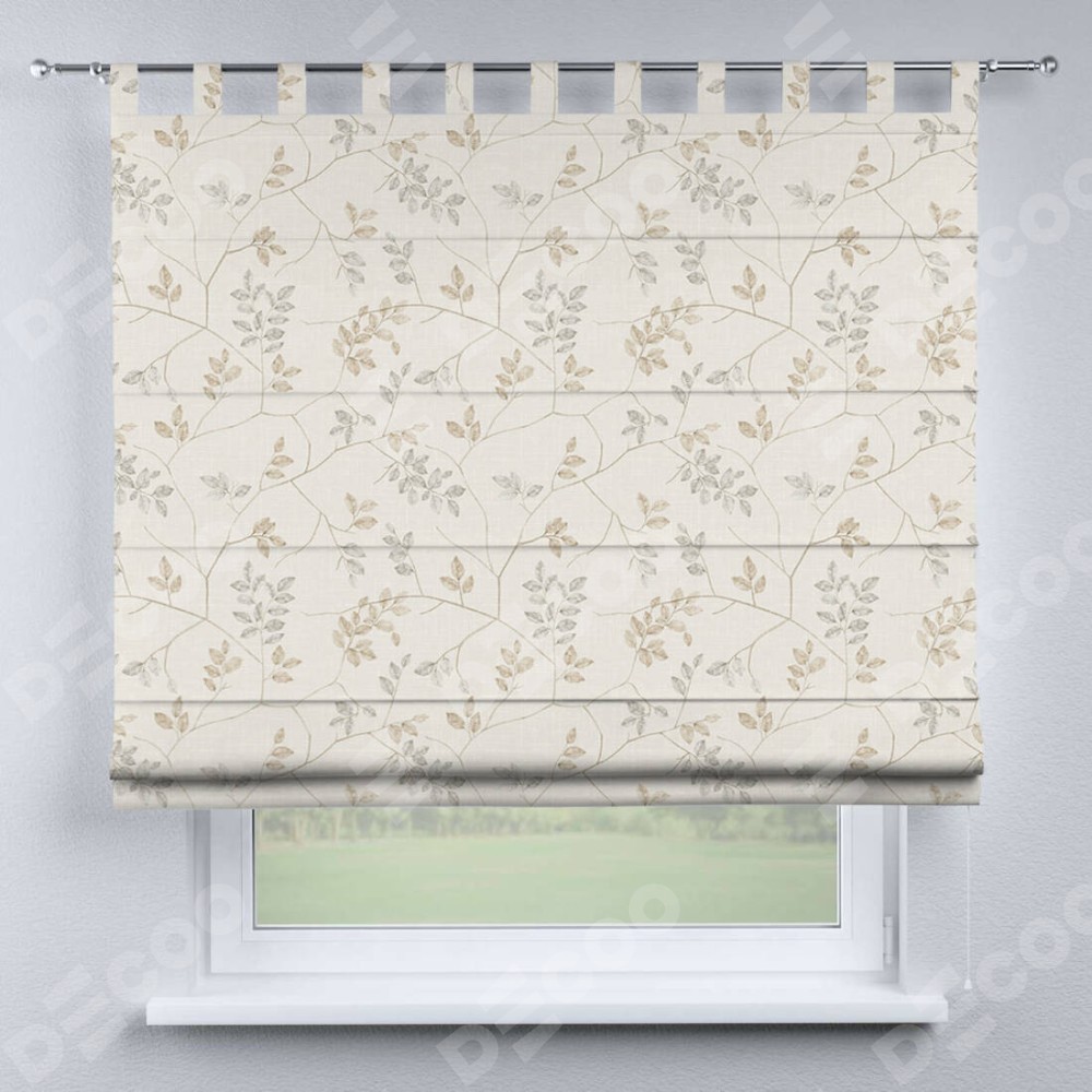 Римская штора производителя «Cortin», используется для проёма, пошита из ткани блэкаут с нанесением сублимационной печати «Флора бежевый». Данная модель пошита на петлях, комплектуется на выбор круглым карнизом и подходит для монтажа на стену. Римская штора на петлях имеет простую систему регулировки высоты, отличительным преимуществом данной модели является простой способ монтажа. Достаточно повесить ее на трубу и штора готова!