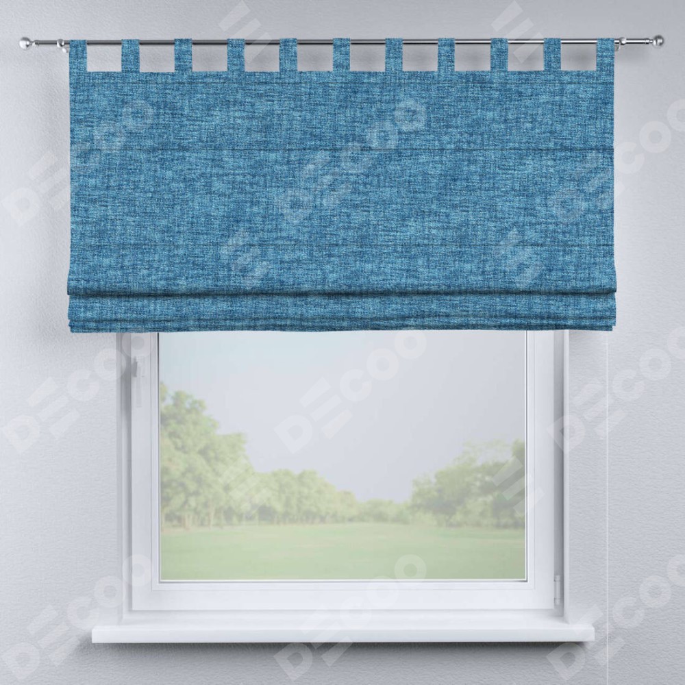 Римская штора производителя «Cortin», используется для проёма, пошита из ткани рогожка димаут джинс, артикул ткани 91026. Данная модель пошита на петлях, комплектуется на выбор круглым карнизом и подходит для монтажа на стену. Римская штора на петлях имеет простую систему регулировки высоты, отличительным преимуществом данной модели является простой способ монтажа. Достаточно повесить ее на трубу и штора готова!