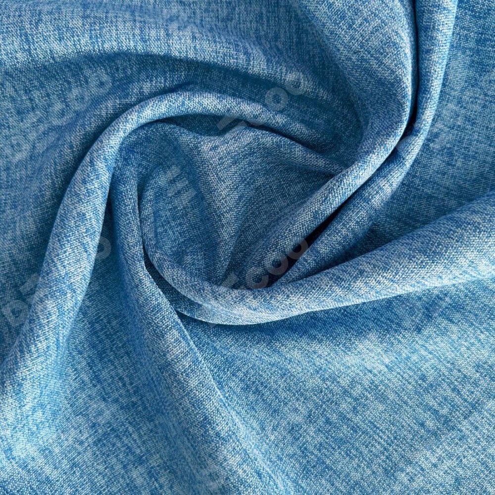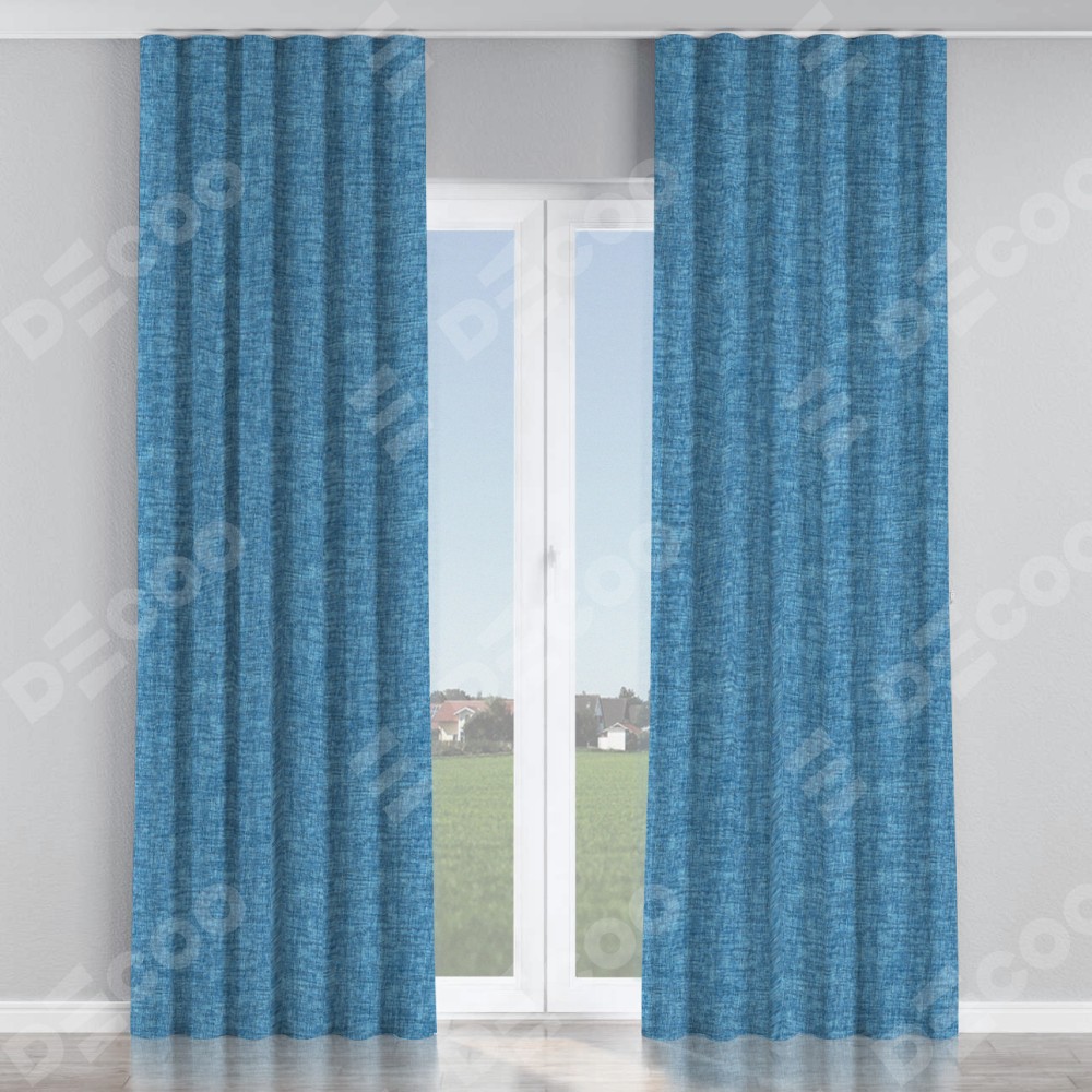 Комплект прямых штор, от производителя «Cortin», пошиты из ткани рогожка димаут джинс, артикул ткани 91026. С изнаночной стороны в верхней части штор пристрачивается шторная лента с декоративными складками «Волна». Для создания элегантных складок прямые шторы шьются по стандарту с коэффициентом 1:2 (на 100 см. ширины проёма 200 см. ширины ткани).