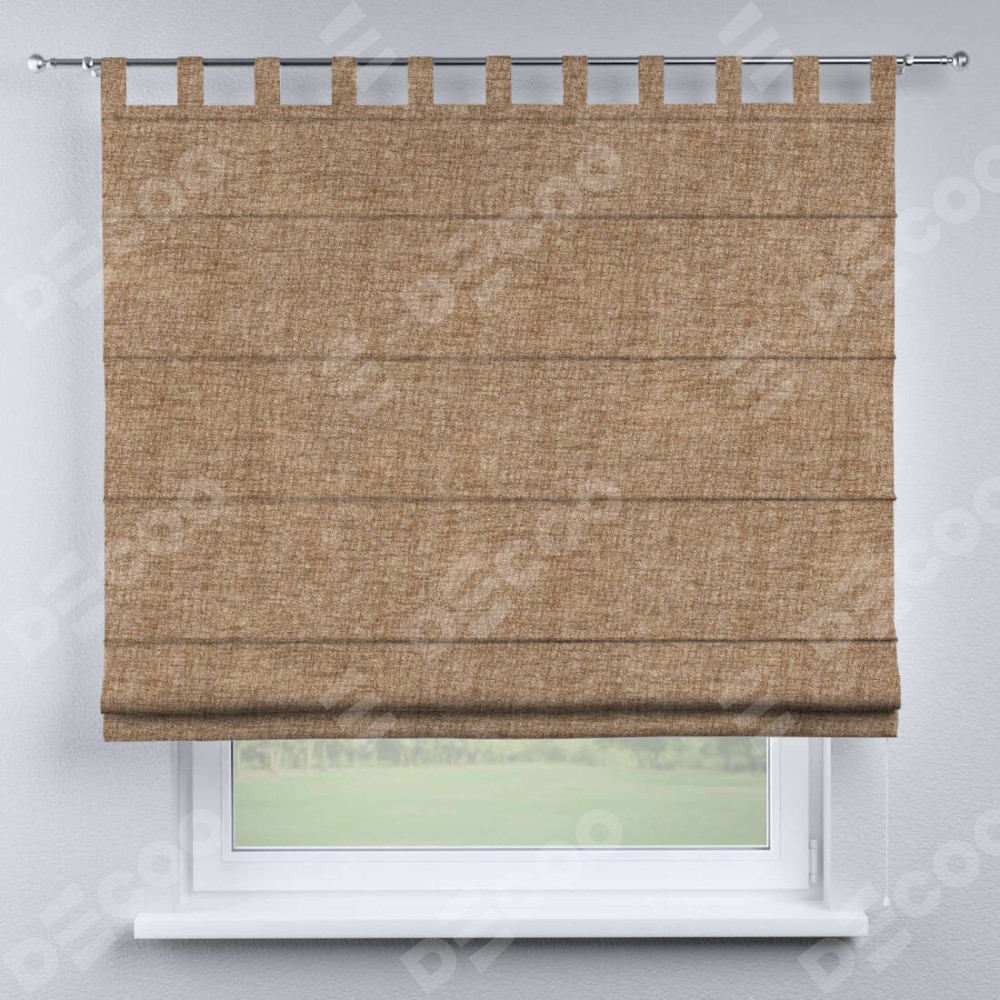 Римская штора производителя «Cortin», используется для проёма, пошита из ткани рогожка димаут светло-коричневый, артикул ткани 91017. Данная модель пошита на петлях, комплектуется на выбор круглым карнизом и подходит для монтажа на стену. Римская штора на петлях имеет простую систему регулировки высоты, отличительным преимуществом данной модели является простой способ монтажа. Достаточно повесить ее на трубу и штора готова!