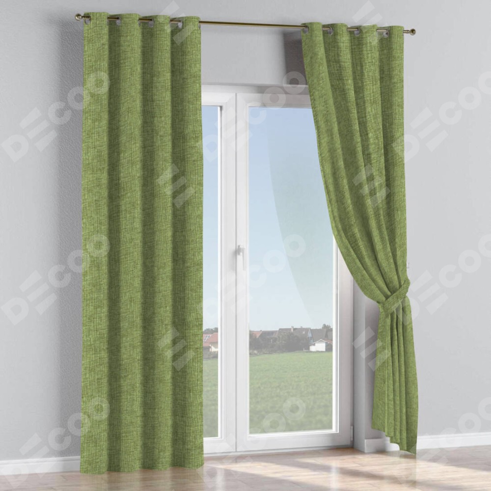 Комплект прямых штор, от производителя «Cortin», пошиты из ткани рогожка димаут травяной, артикул ткани 91021. Данная модель пошита на люверсах, комплектуется на выбор круглым карнизом и подходит для монтажа на стену или потолок. Прямые шторы на люверсах шьются по стандарту с коэффициентом 1/2 (на 100 см. ширины проёма 200 см. ширины ткани), отличительным преимуществом данной модели является простой способ монтажа. Достаточно повесить ее на трубу и штора готова!