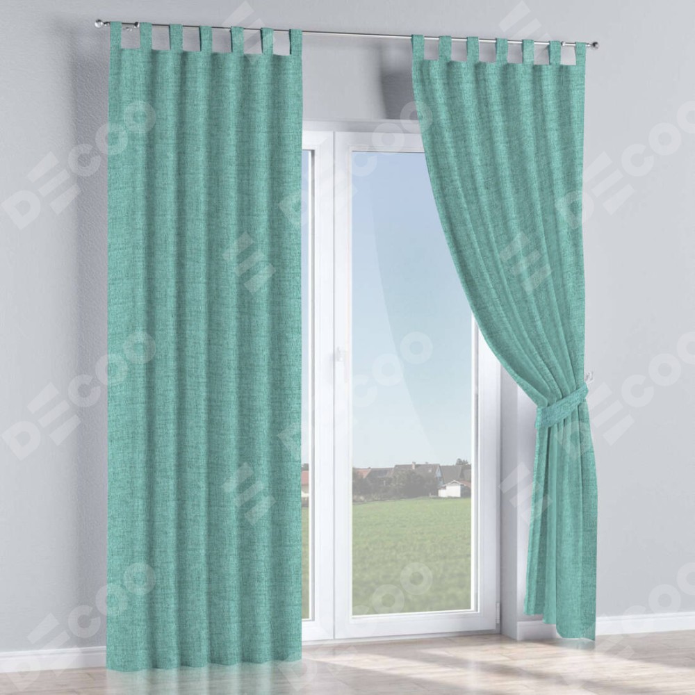 Комплект прямых штор, от производителя «Cortin», пошиты из ткани рогожка димаут аквамариновый крайола, артикул ткани 91023. Данная модель пошита на петлях, комплектуется на выбор круглым карнизом и подходит для монтажа на стену или потолок. Прямые шторы на петлях шьются по стандарту с коэффициентом 1/2 (на 100 см. ширины проёма 200 см. ширины ткани), отличительным преимуществом данной модели является простой способ монтажа. Достаточно повесить ее на трубу и штора готова!