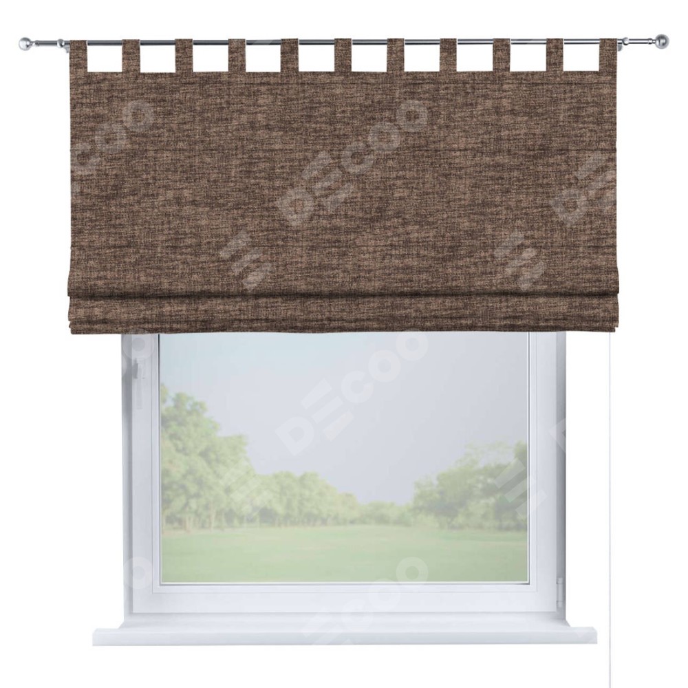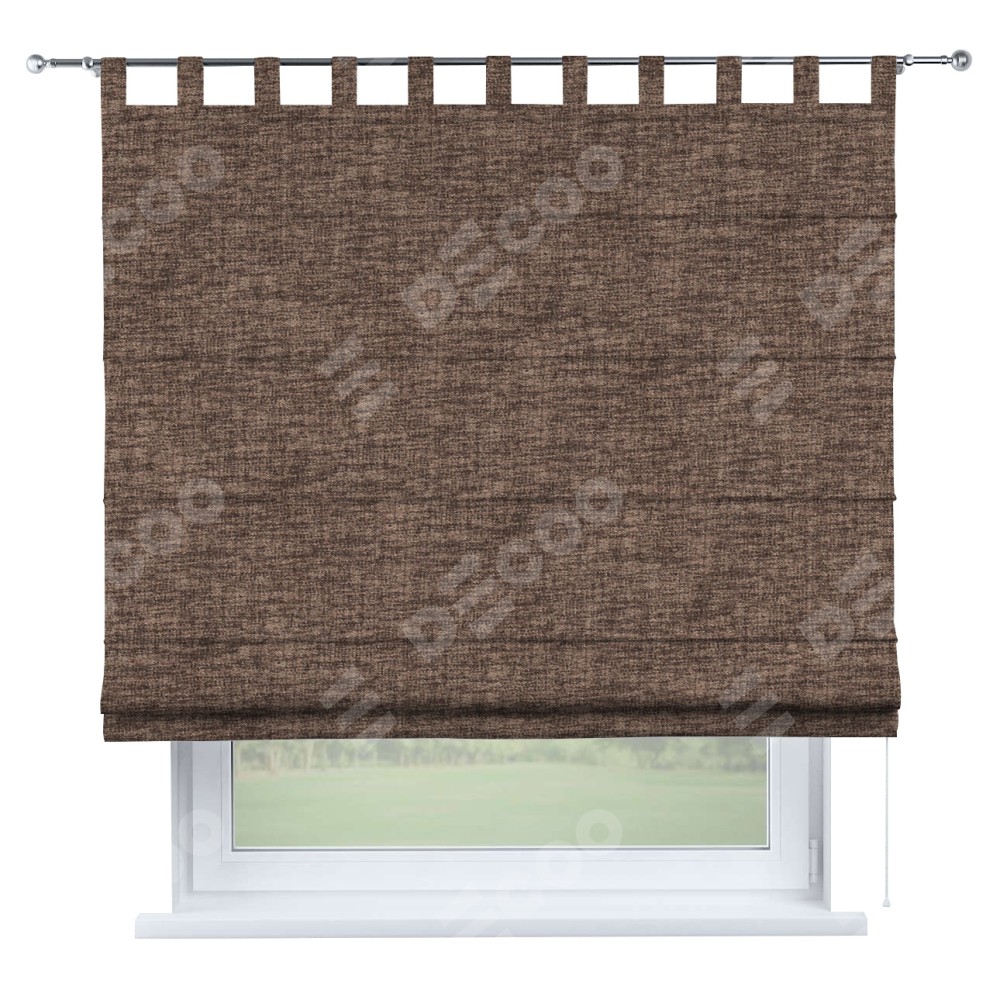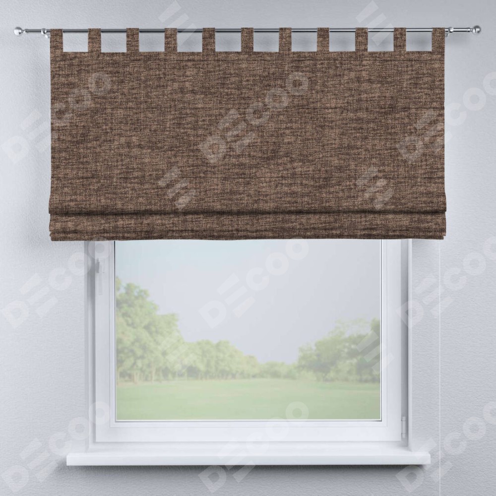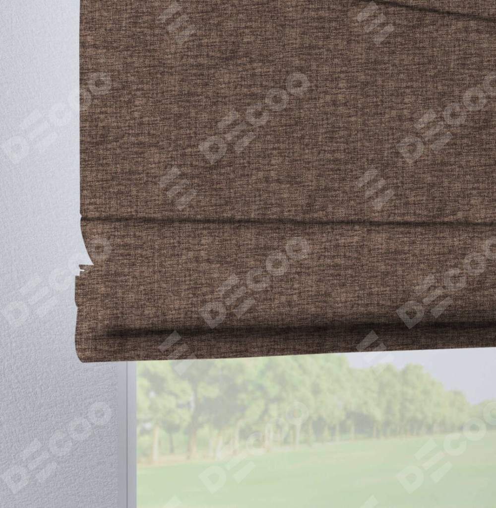 Римская штора производителя «Cortin», используется для проёма, пошита из ткани рогожка димаут коричневый, артикул ткани 91018. Данная модель пошита на петлях, комплектуется на выбор круглым карнизом и подходит для монтажа на стену. Римская штора на петлях имеет простую систему регулировки высоты, отличительным преимуществом данной модели является простой способ монтажа. Достаточно повесить ее на трубу и штора готова!