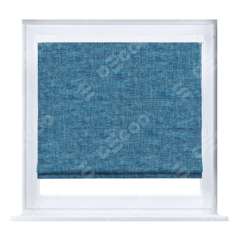 Римская штора производителя «Cortin», устанавливается на створку окна, пошита из ткани рогожка димаут лазурно-синий, артикул 91024. Штора шьётся по индивидуальным размерам, для данного типа римской шторы возможная ширина от 35 до 150 см., высота до 250 см.