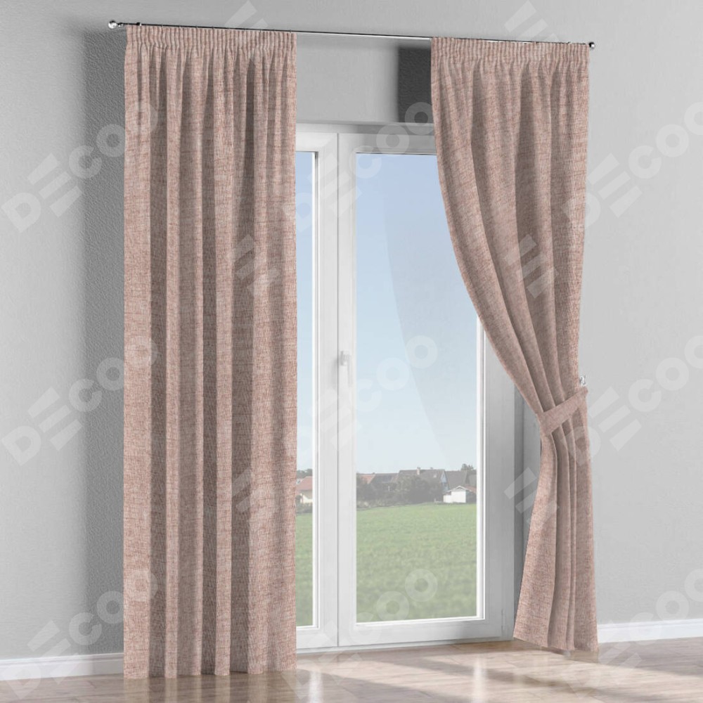 Комплект прямых штор, от производителя «Cortin», пошиты из ткани рогожка димаут пыльный розовый, артикул ткани 91019. С изнаночной стороны в верхней части штор пристрачивается шторная лента с декоративными складками «Карандаш». Для создания элегантных складок прямые шторы шьются по стандарту с коэффициентом 1:2 (на 100 см. ширины проёма 200 см. ширины ткани).