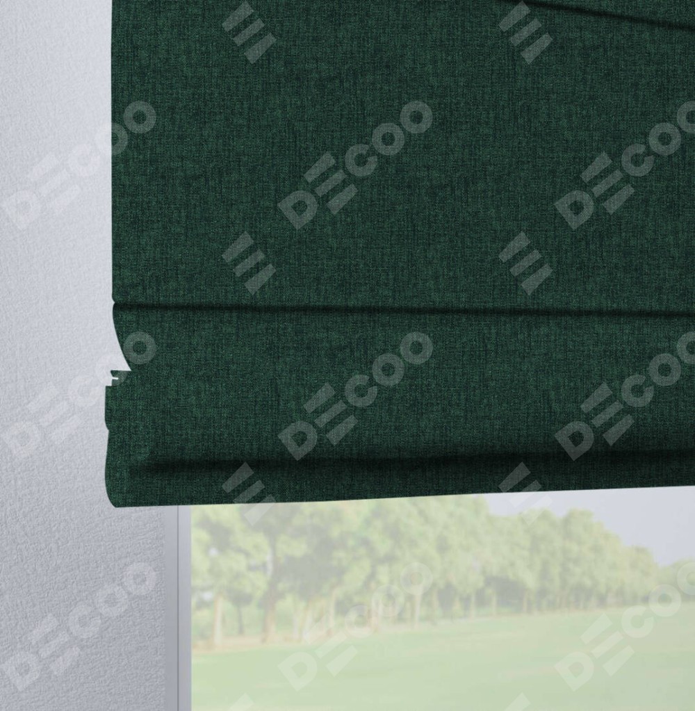 Римская штора производителя «Cortin», используется для проёма, пошита из ткани рогожка димаут тёмно-зелёный, артикул ткани 91022. Данная модель пошита на петлях, комплектуется на выбор круглым карнизом и подходит для монтажа на стену. Римская штора на петлях имеет простую систему регулировки высоты, отличительным преимуществом данной модели является простой способ монтажа. Достаточно повесить ее на трубу и штора готова!
