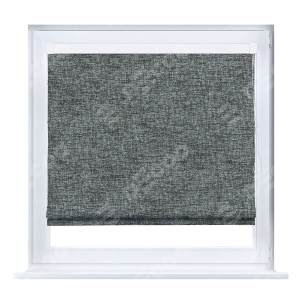 Римская штора производителя «Cortin», устанавливается на створку окна, пошита из ткани рогожка димаут тёмно-серый, артикул 91029. Штора шьётся по индивидуальным размерам, для данного типа римской шторы возможная ширина от 35 до 150 см., высота до 250 см.