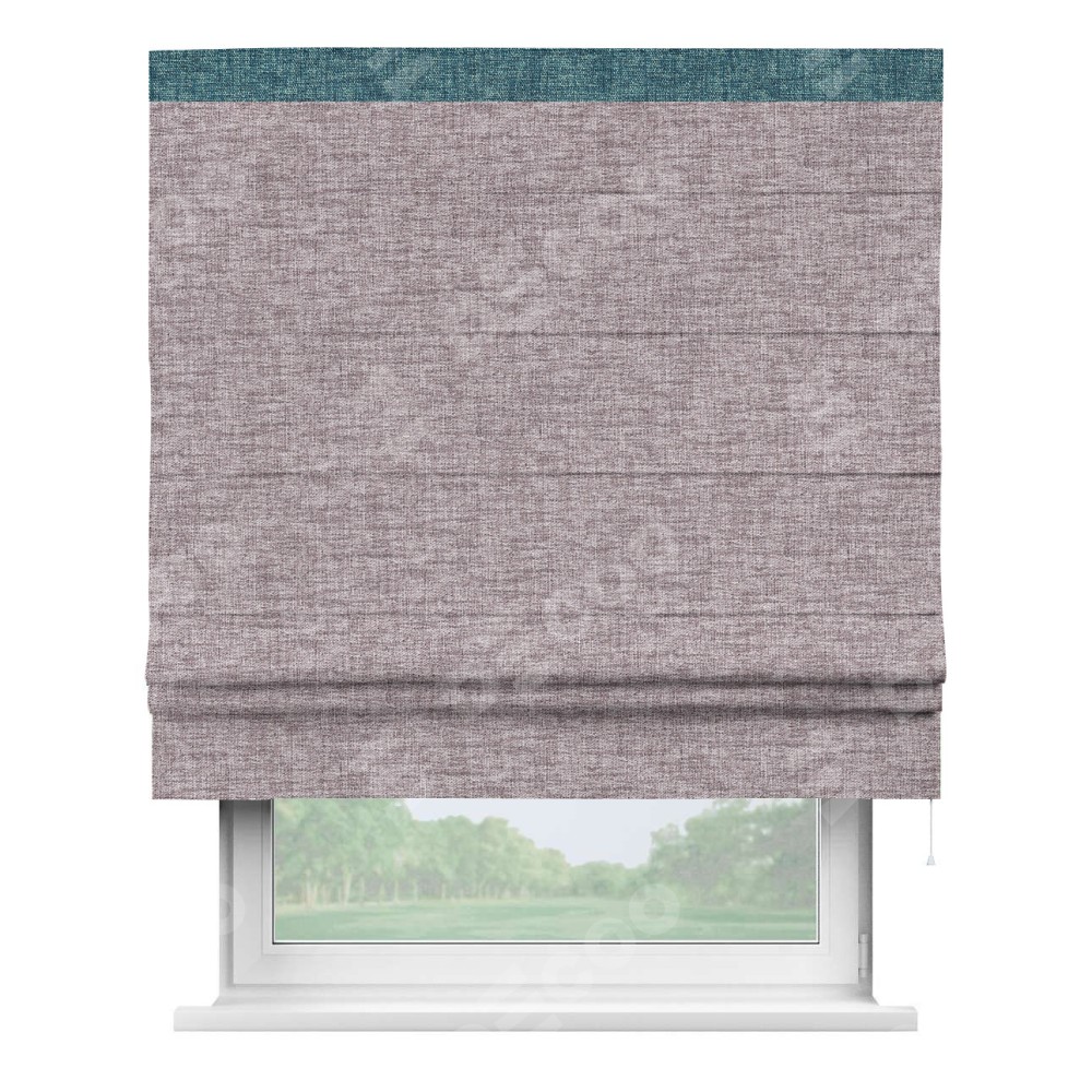 Римская штора пошита из ткани рогожка димаут розовый кварц, артикул: 91030, с отделкой кантом «Кинг» отличается своей необычной особенностью: кант располагается исключительно сверху шторы. Такой дизайн делает акцент на верхней части окна, визуально поднимая потолок и придавая интерьеру более возвышенный и изысканный вид. Отделка кантом на верхней кромке не только украшает штору, но и может служить дополнительной защитой от износа в месте наибольшего контакта с механизмом управления шторой.