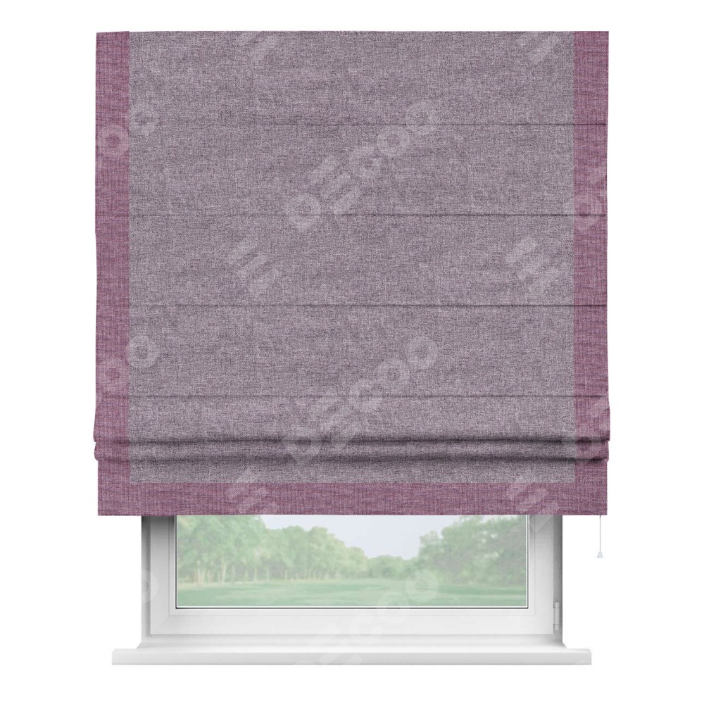 Римская штора с отделкой кантом «Виктория», пошита из ткани лён кашемир фиолетовый, артикул: 17211. представляет собой элегантное решение для оконного оформления. Кант по бокам и снизу шторы добавляет изысканности и аккуратности внешнему виду, подчеркивая линии и форму шторы. Этот элемент декора не только украшает, но и выполняет практическую функцию, защищая края ткани от износа. Кант может быть выполнен в контрастном или гармонирующем цвете, что позволяет добиться различных стилевых эффектов и легко вписать штору в интерьер комнаты.