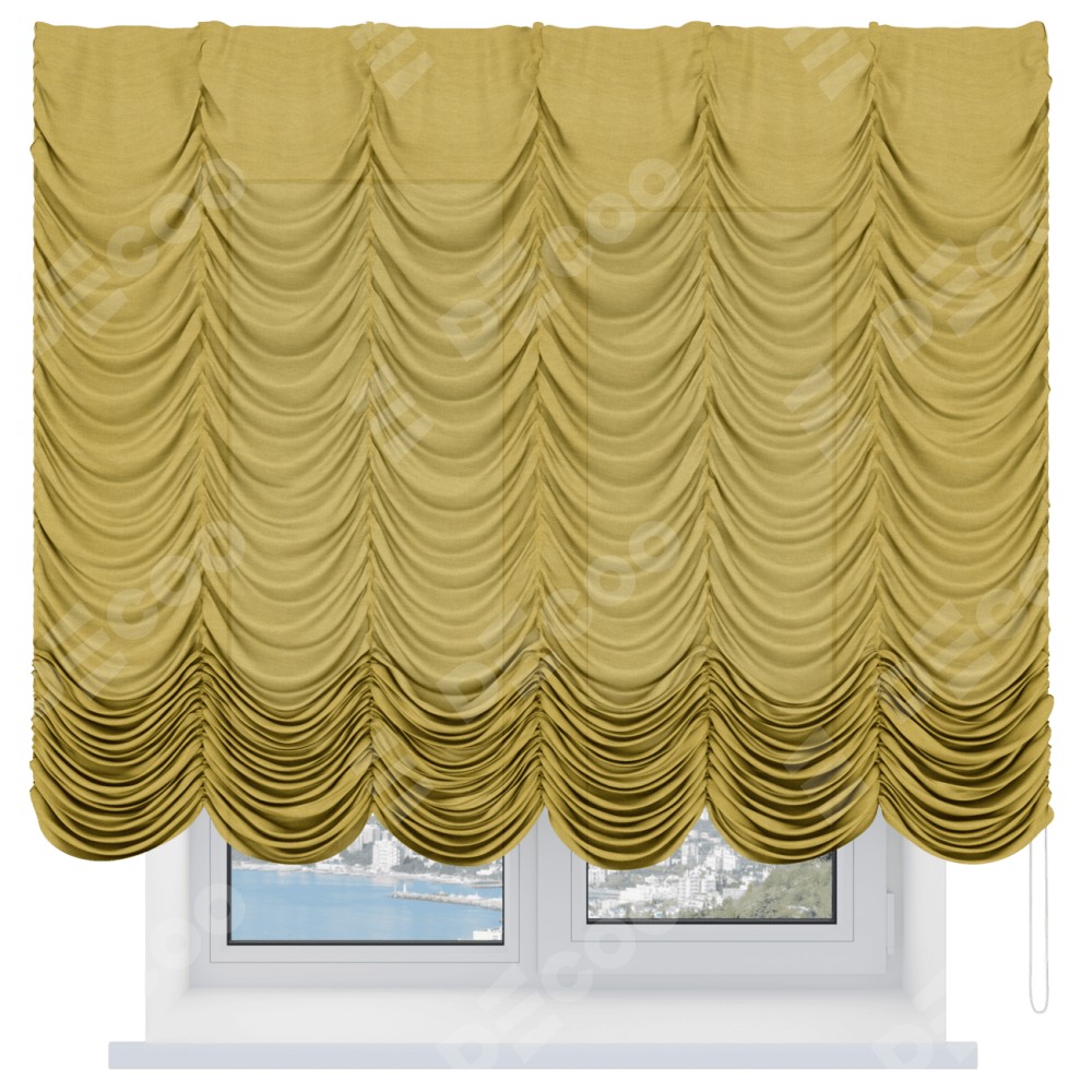 Французская штора производителя «Cortin», используется для проёма, пошита из ткани лён светло-салатовый, артикул ткани 53438. Имеет универсальный механизм и подходит для монтажа: на потолок и на стену.