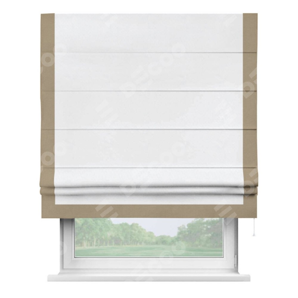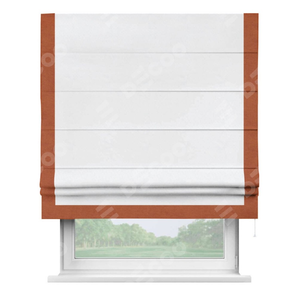 Римская штора с отделкой кантом «Виктория», пошита из ткани вельвет белоснежный, артикул: 92698. представляет собой элегантное решение для оконного оформления. Кант по бокам и снизу шторы добавляет изысканности и аккуратности внешнему виду, подчеркивая линии и форму шторы. Этот элемент декора не только украшает, но и выполняет практическую функцию, защищая края ткани от износа. Кант может быть выполнен в контрастном или гармонирующем цвете, что позволяет добиться различных стилевых эффектов и легко вписать штору в интерьер комнаты.