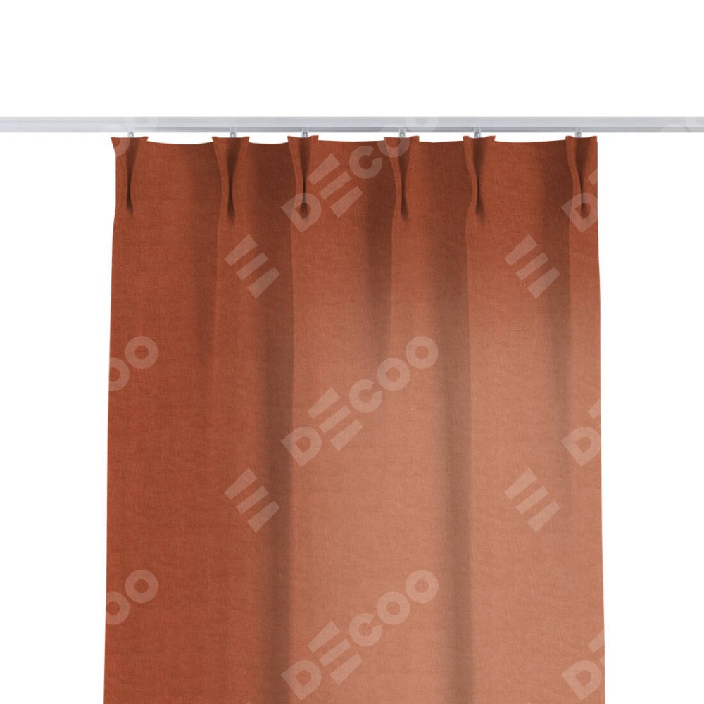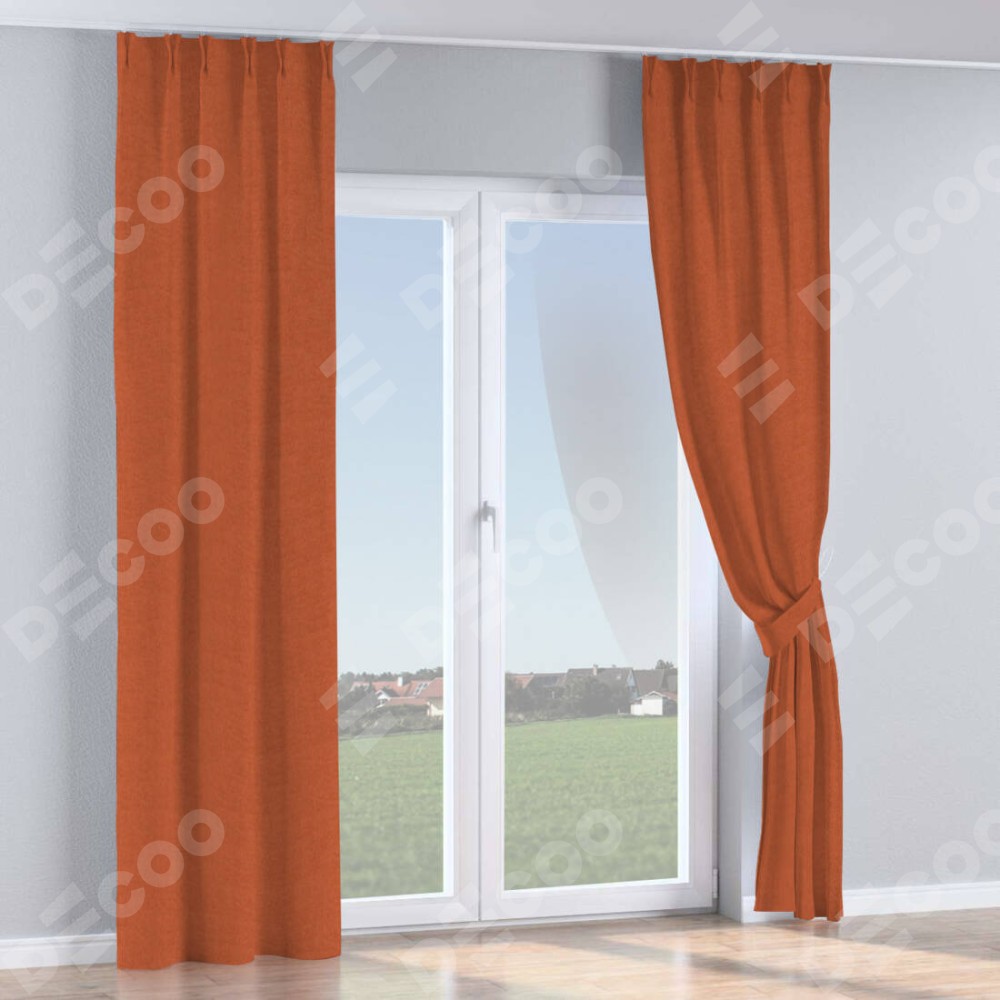 Комплект прямых штор, от производителя «Cortin», пошиты из ткани канвас терракотовый, артикул ткани v-107. С изнаночной стороны в верхней части штор пристрачивается шторная лента с декоративными складками «Кустик». Для создания элегантных складок рекомендуемый коэффициент 1:2 (на 100 см. ширины проёма 200 см. ширины ткани). Важно! Ширина штор указана без учёта коэффициента сборки!