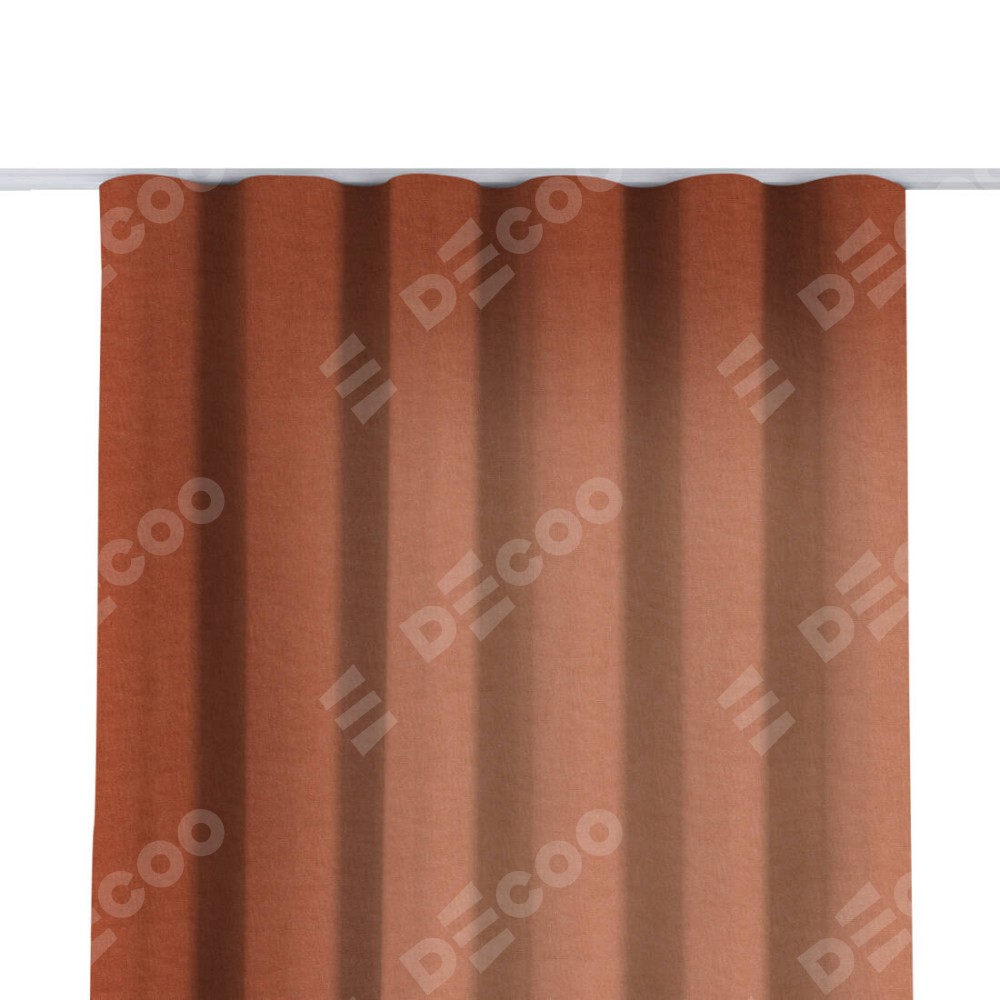 Комплект прямых штор, от производителя «Cortin», пошиты из ткани канвас терракотовый, артикул ткани v-107. С изнаночной стороны в верхней части штор пристрачивается шторная лента с декоративными складками «Волна». Для создания элегантных складок рекомендуемый коэффициент 1:2 (на 100 см. ширины проёма 200 см. ширины ткани). Важно! Ширина штор указана без учёта коэффициента сборки!