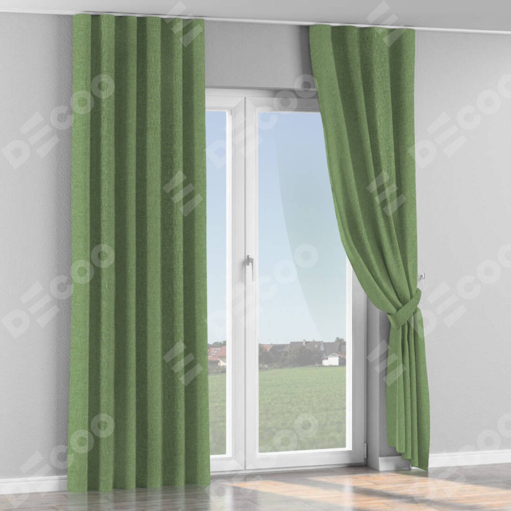 Комплект прямых штор, от производителя «Cortin», пошиты из ткани лён димаут светло-салатовый, артикул ткани 128528. С изнаночной стороны в верхней части штор пристрачивается шторная лента с декоративными складками «Волна». Для создания элегантных складок рекомендуемый коэффициент 1:2 (на 100 см. ширины проёма 200 см. ширины ткани). Важно! Ширина штор указана без учёта коэффициента сборки!