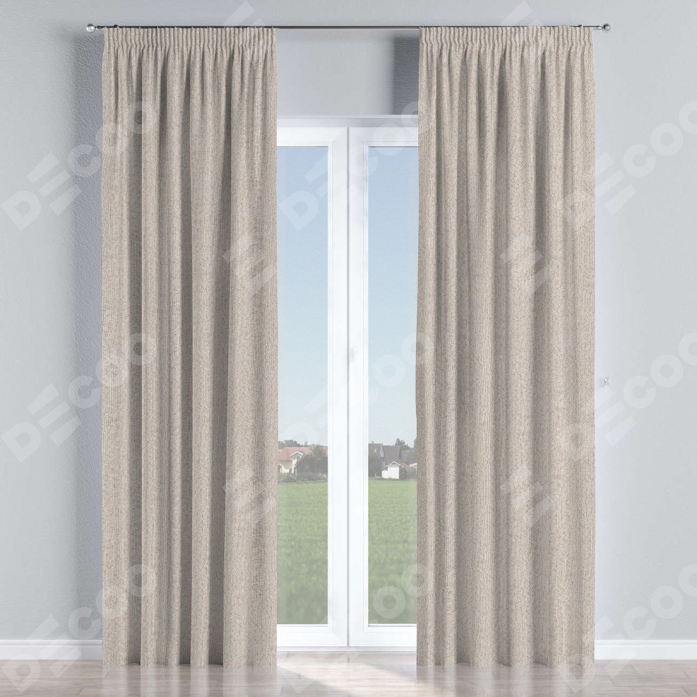 Комплект прямых штор, от производителя «Cortin», пошиты из ткани лён димаут бежевый, артикул ткани 01. С изнаночной стороны в верхней части штор пристрачивается шторная лента с декоративными складками «Карандаш». Для создания элегантных складок рекомендуемый коэффициент 1:2 (на 100 см. ширины проёма 200 см. ширины ткани). Важно! Ширина штор указана без учёта коэффициента сборки!
