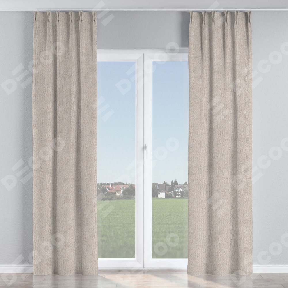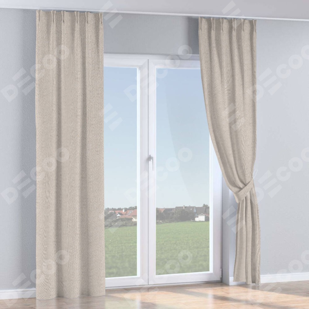 Комплект прямых штор, от производителя «Cortin», пошиты из ткани лён димаут бежевый, артикул ткани 01. С изнаночной стороны в верхней части штор пристрачивается шторная лента с декоративными складками «Кустик». Для создания элегантных складок рекомендуемый коэффициент 1:2 (на 100 см. ширины проёма 200 см. ширины ткани). Важно! Ширина штор указана без учёта коэффициента сборки!