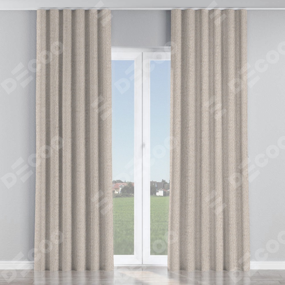 Комплект прямых штор, от производителя «Cortin», пошиты из ткани лён димаут бежевый, артикул ткани 01. С изнаночной стороны в верхней части штор пристрачивается шторная лента с декоративными складками «Волна». Для создания элегантных складок рекомендуемый коэффициент 1:2 (на 100 см. ширины проёма 200 см. ширины ткани). Важно! Ширина штор указана без учёта коэффициента сборки!