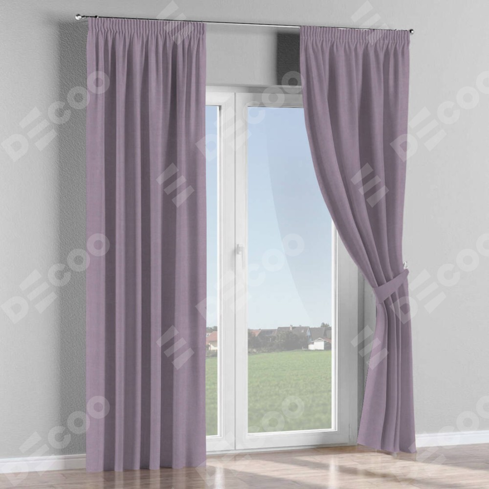 Комплект прямых штор, от производителя «Cortin», пошиты из ткани однотонный блэкаут лиловый, артикул ткани 91577. С изнаночной стороны в верхней части штор пристрачивается шторная лента с декоративными складками «Карандаш». Для создания элегантных складок рекомендуемый коэффициент 1:2 (на 100 см. ширины проёма 200 см. ширины ткани). Важно! Ширина штор указана без учёта коэффициента сборки!