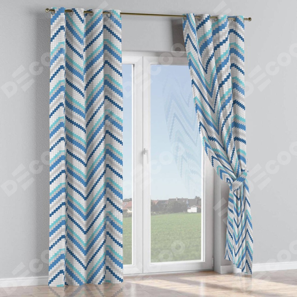 Комплект прямых штор, от производителя «Cortin», пошиты из ткани геометрическая волна, артикул ткани. Данная модель пошита на люверсах, комплектуется на выбор круглым карнизом и подходит для монтажа на стену или потолок. Для создания элегантных складок рекомендуемый коэффициент 1:2 (на 100 см. ширины проёма 200 см. ширины ткани). Важно! Ширина штор указана без учёта коэффициента сборки!