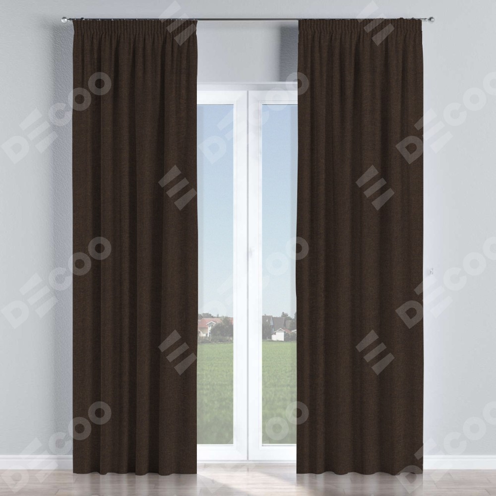 Комплект прямых штор, от производителя «Cortin», пошиты из ткани лён тёмно-коричневый, артикул ткани 104497. С изнаночной стороны в верхней части штор пристрачивается шторная лента с декоративными складками «Карандаш». Для создания элегантных складок рекомендуемый коэффициент 1:2 (на 100 см. ширины проёма 200 см. ширины ткани). Важно! Ширина штор указана без учёта коэффициента сборки!