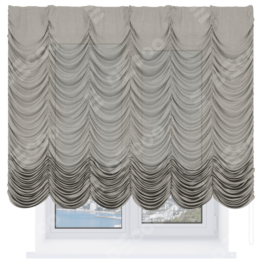 Французская штора производителя «Cortin», используется для проёма, пошита из ткани лён бежевый, артикул ткани 143839. Имеет универсальный механизм и подходит для монтажа: на потолок и на стену.