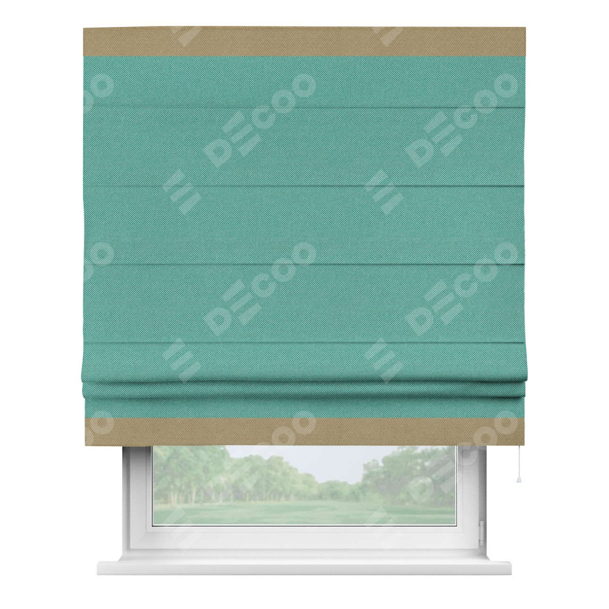 Римская штора «Кортин» с кантом Горизонт, для проема, ткань лён димаут, бирюзовый