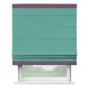 Римская штора производителя «Cortin», используется для проёма, пошита из ткани лён димаут бирюзовый, артикул 23. Отделка шторы кантом «Горизонт», ткань для канта используется из льна димаут разной расцветки на выбор. Имеет универсальный механизм и подходит для монтажа: на потолок, на стену и в нишу.