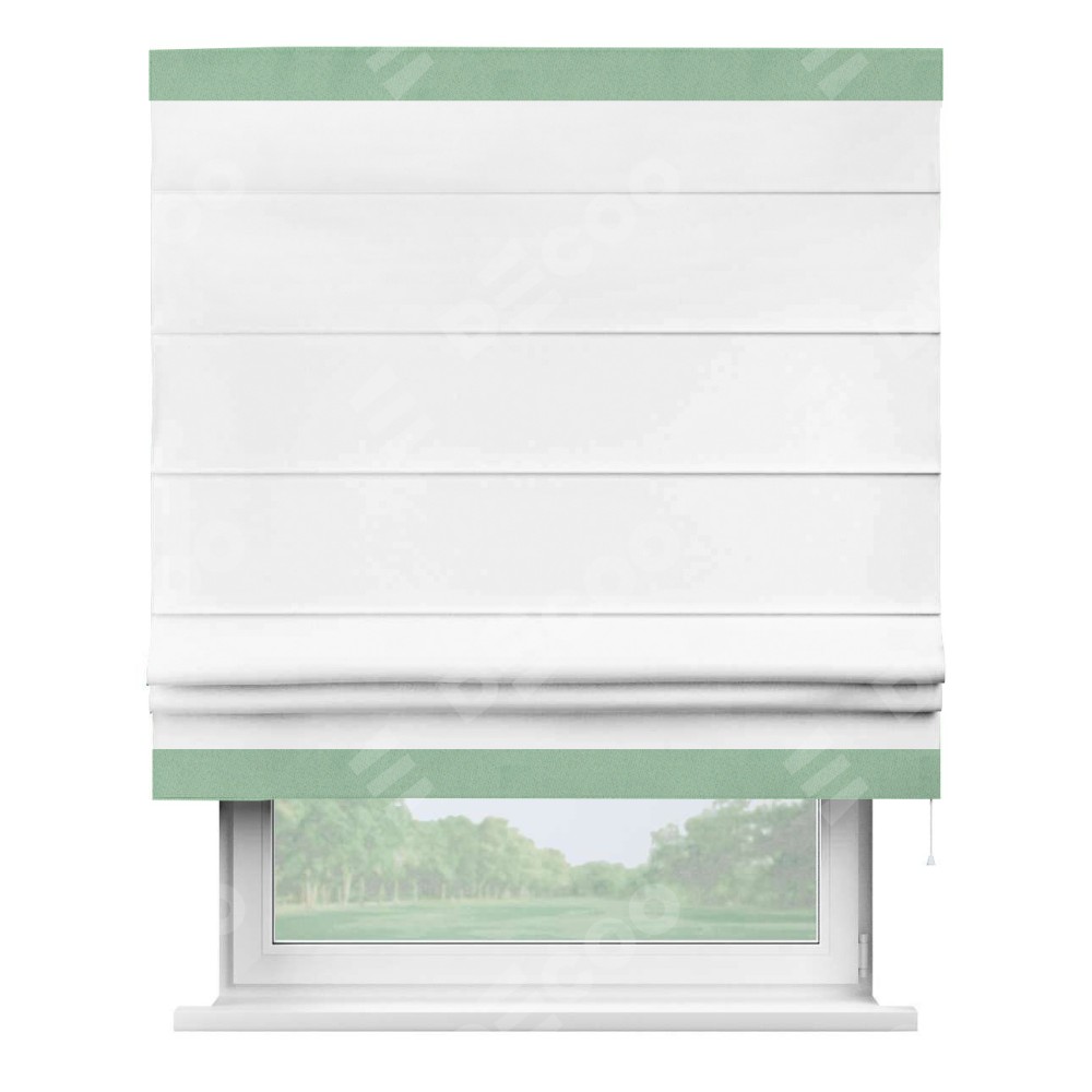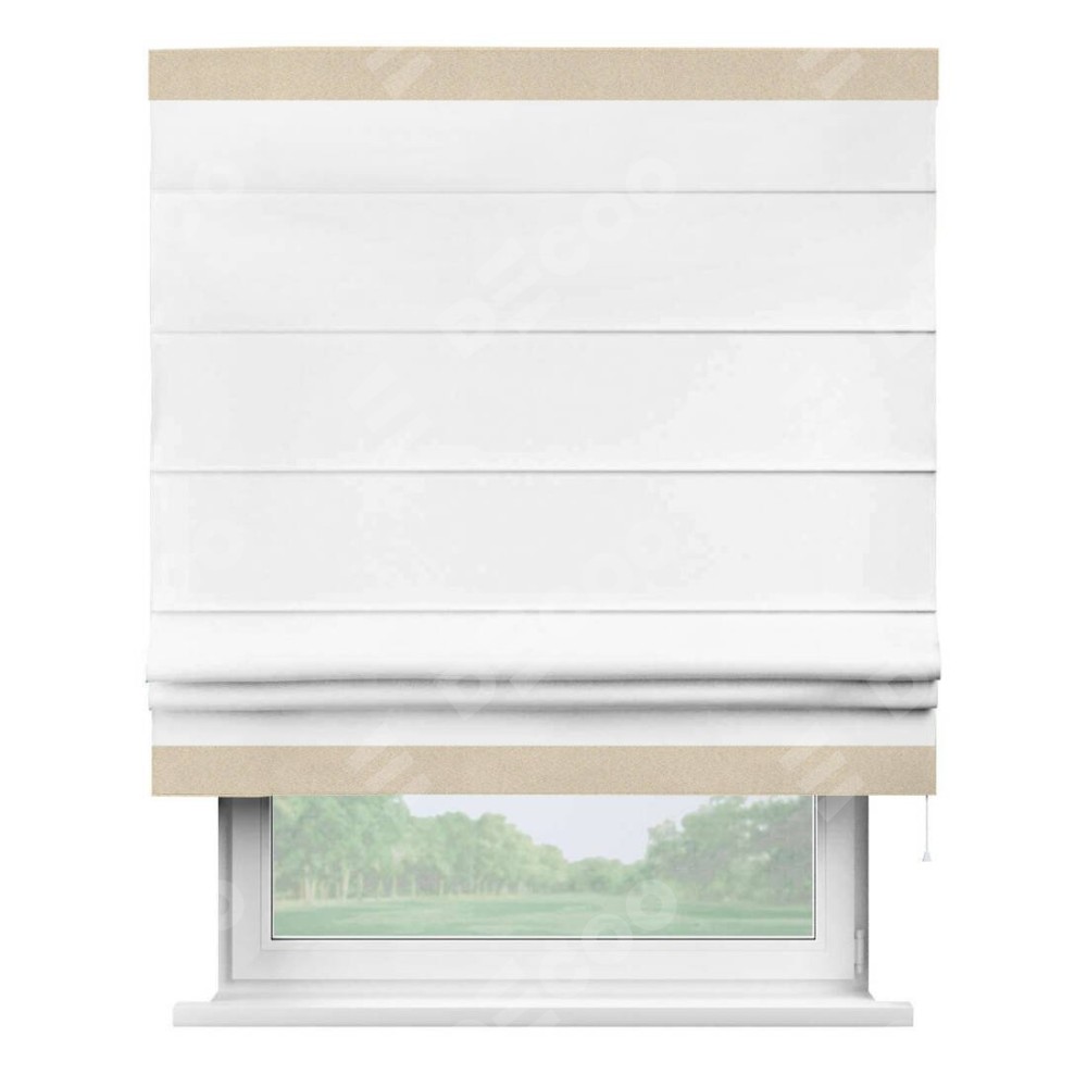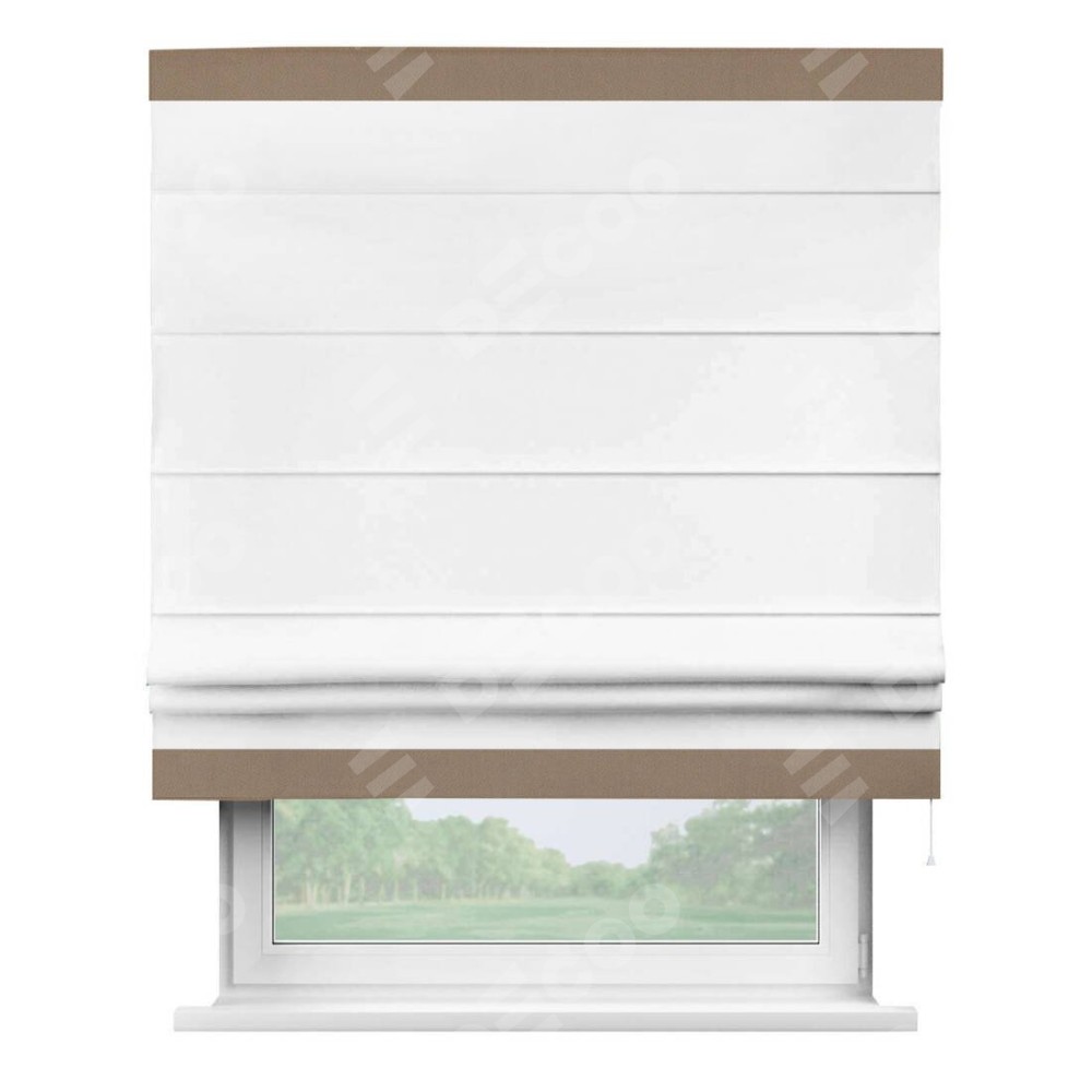 Римская штора «Кортин» для проёма, вайтаут однотонная белая с кантом Горизонт