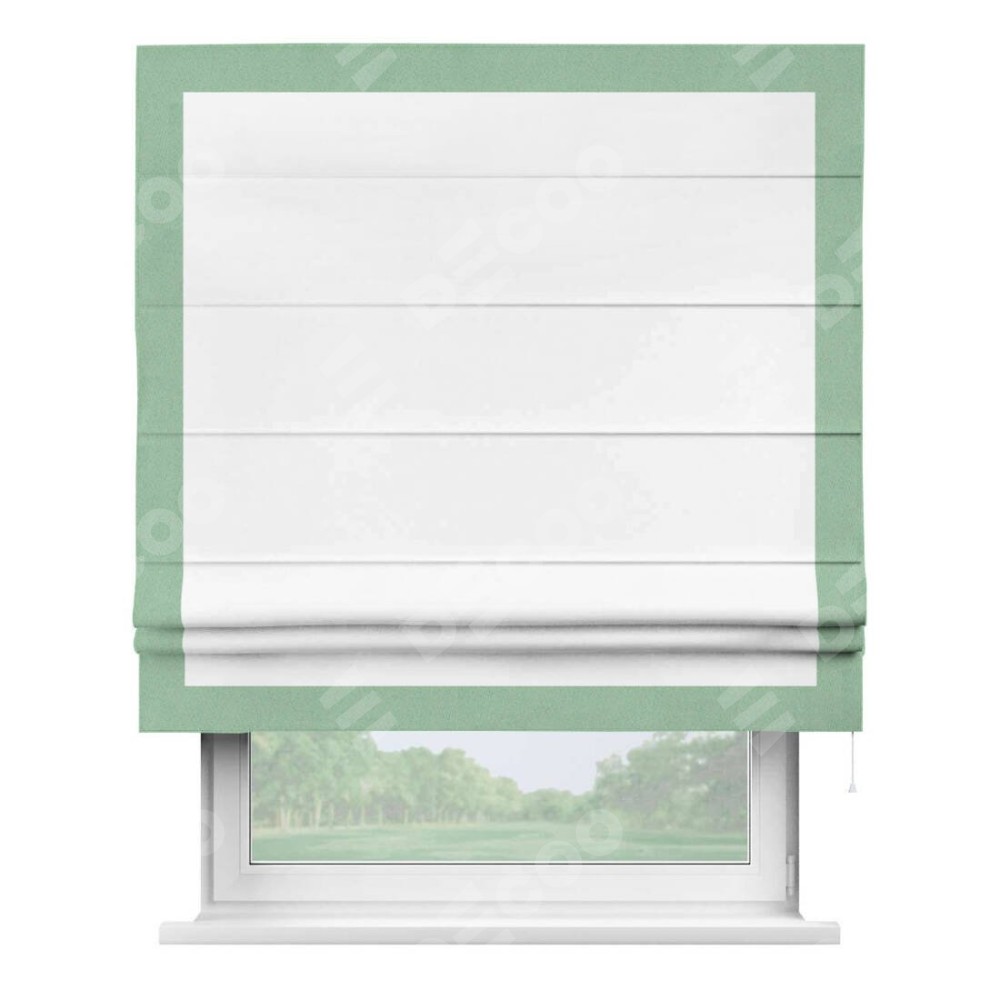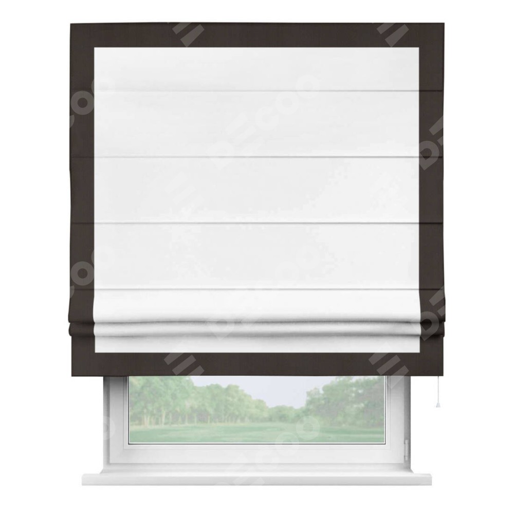 Римская штора «Кортин» для проёма, вайтаут однотонная белая с кантом Чесс
