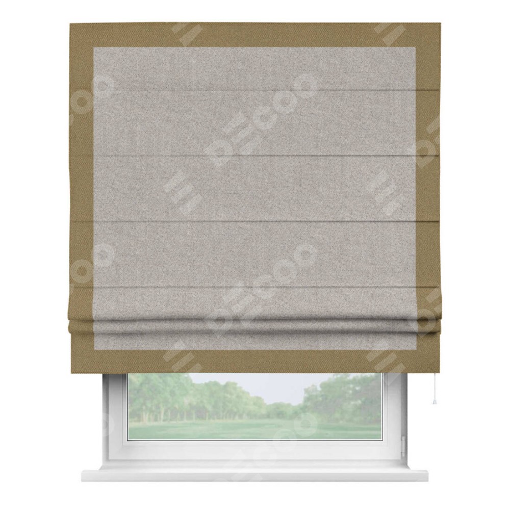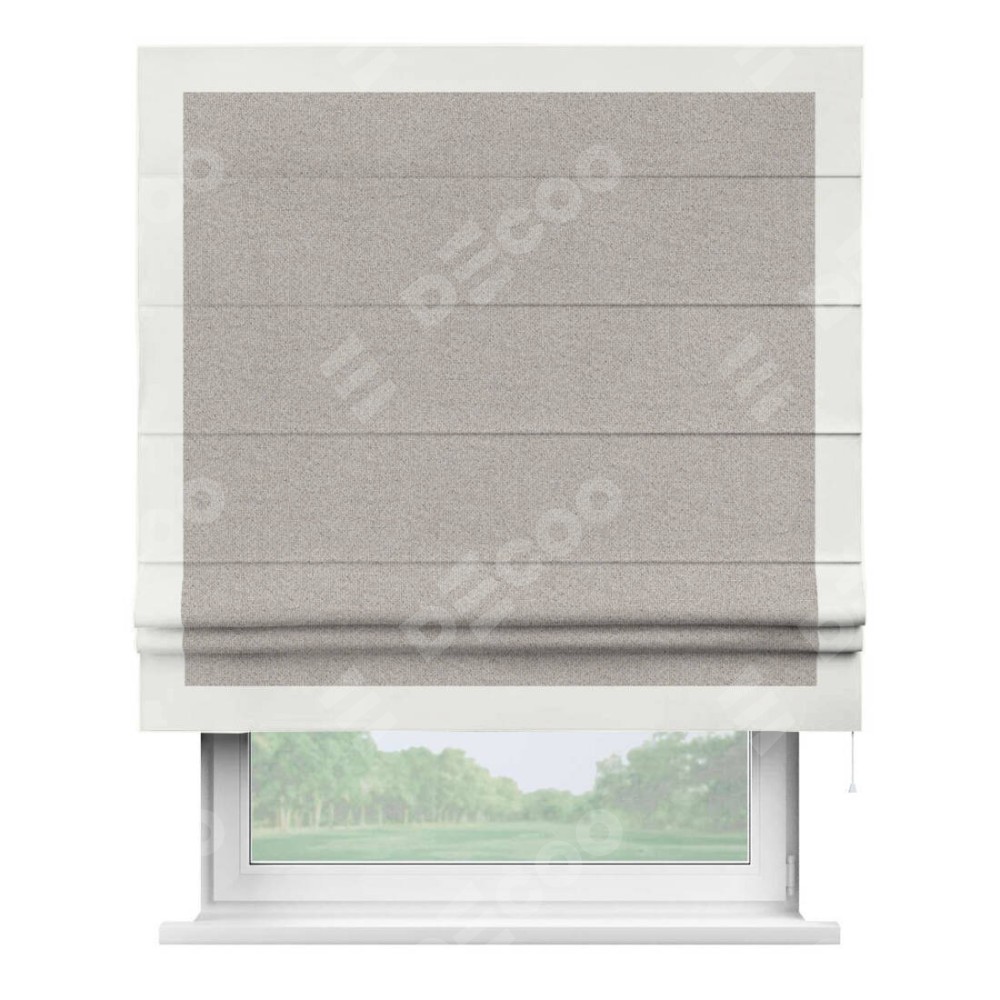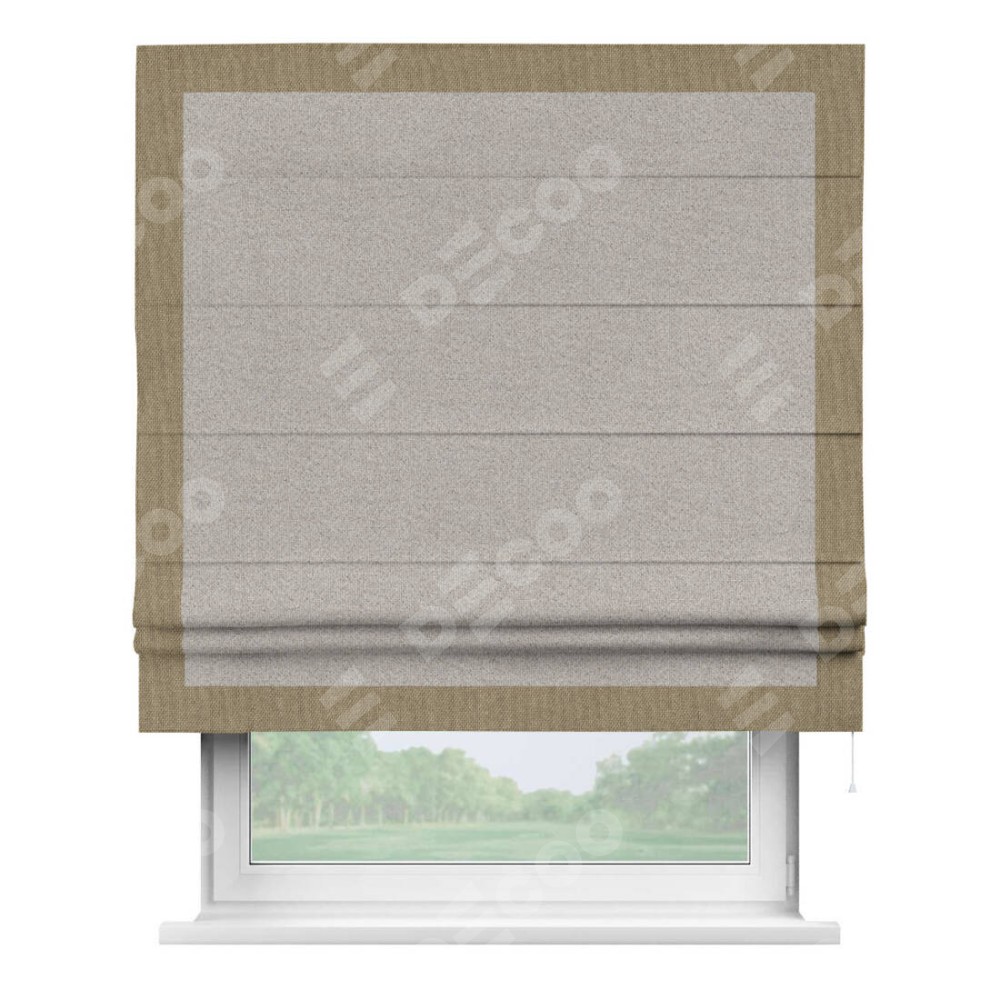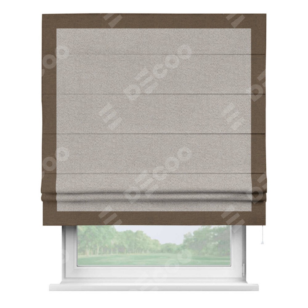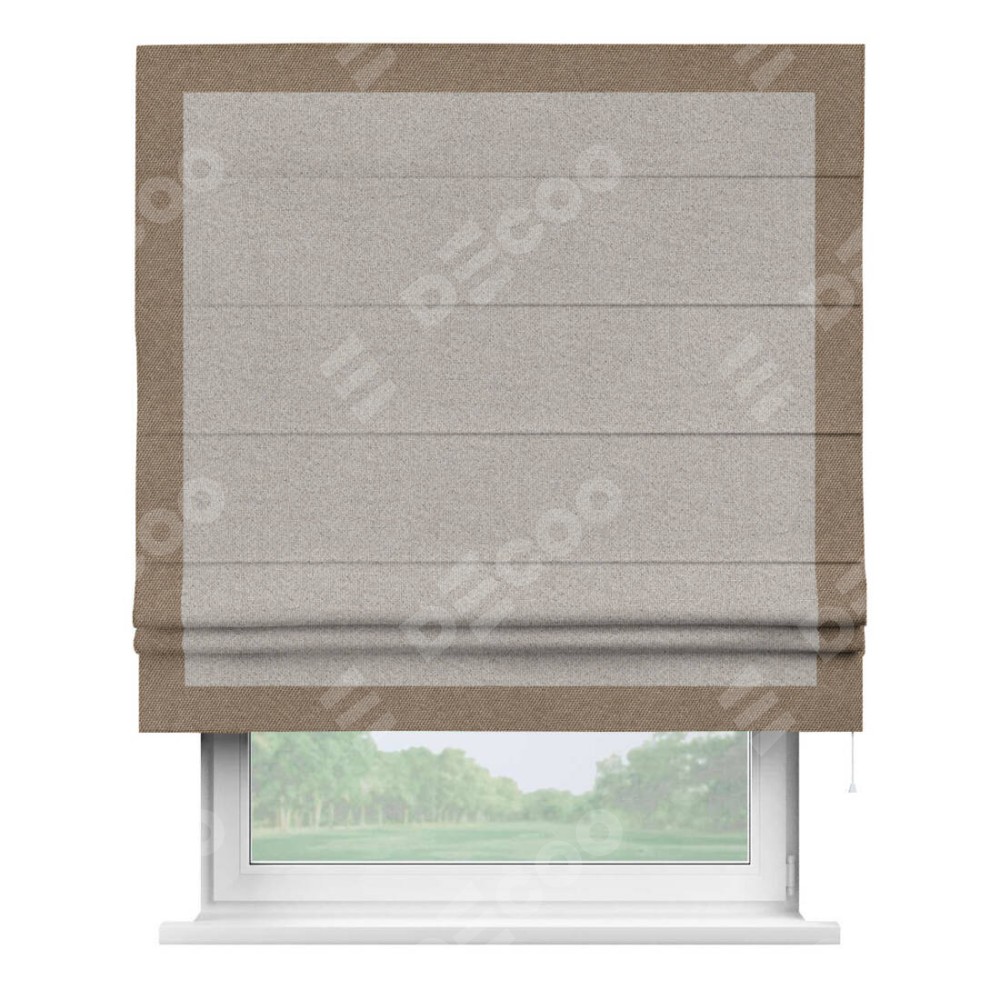 Римская штора «Кортин» для проема, лён димаут серо-бежевый с кантом Чесс