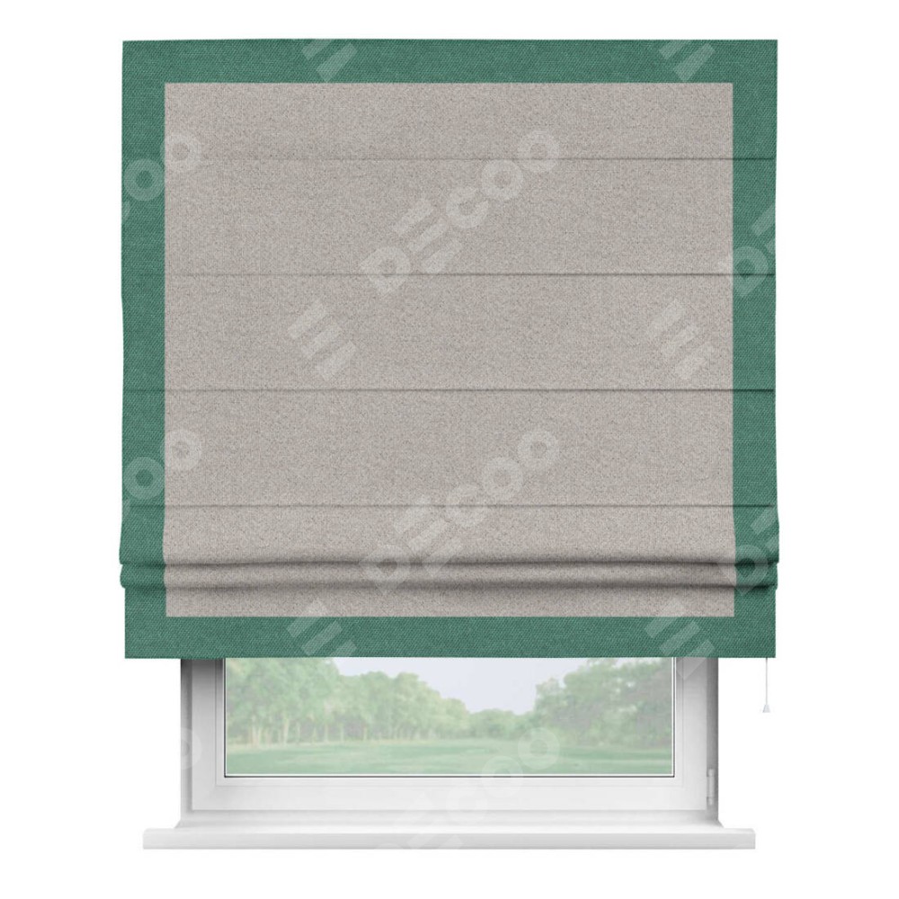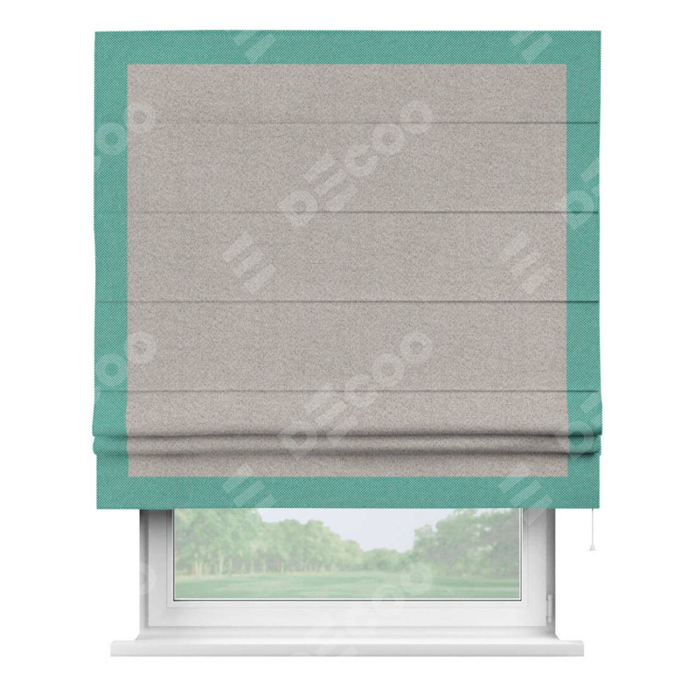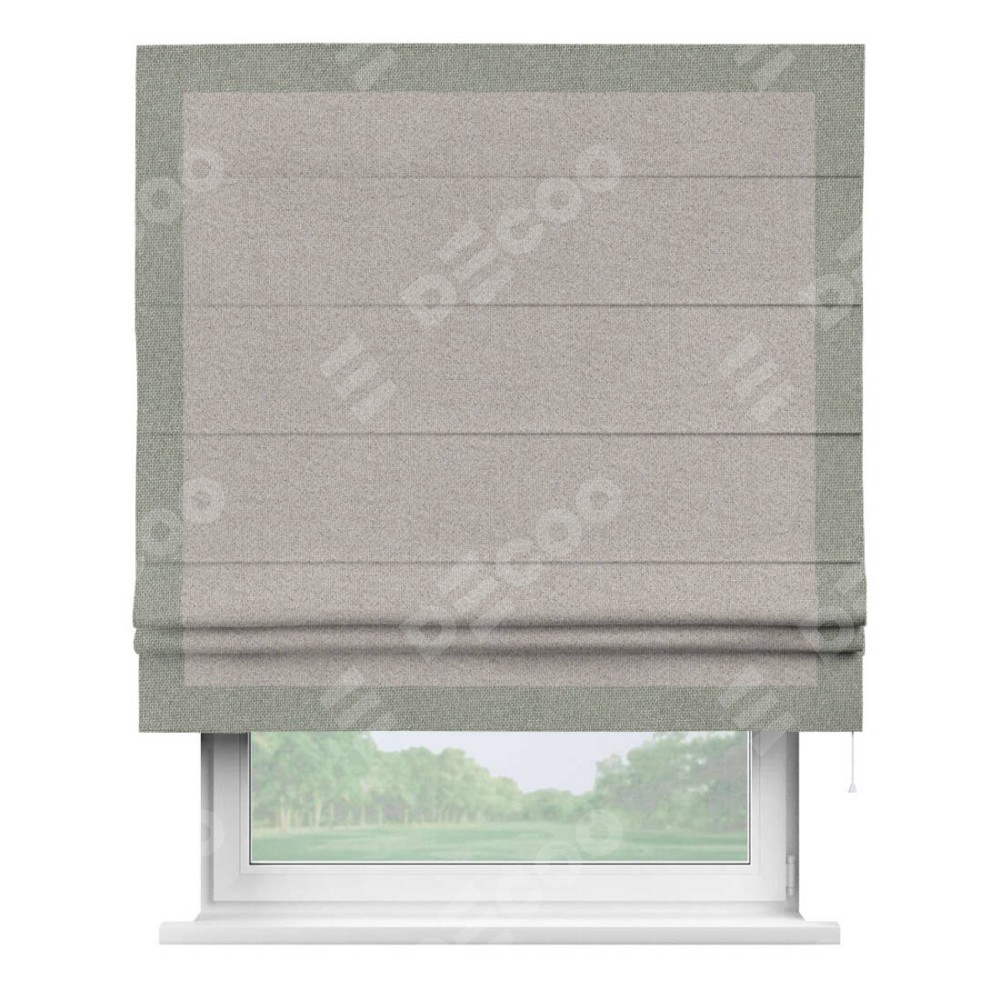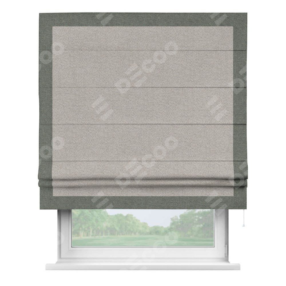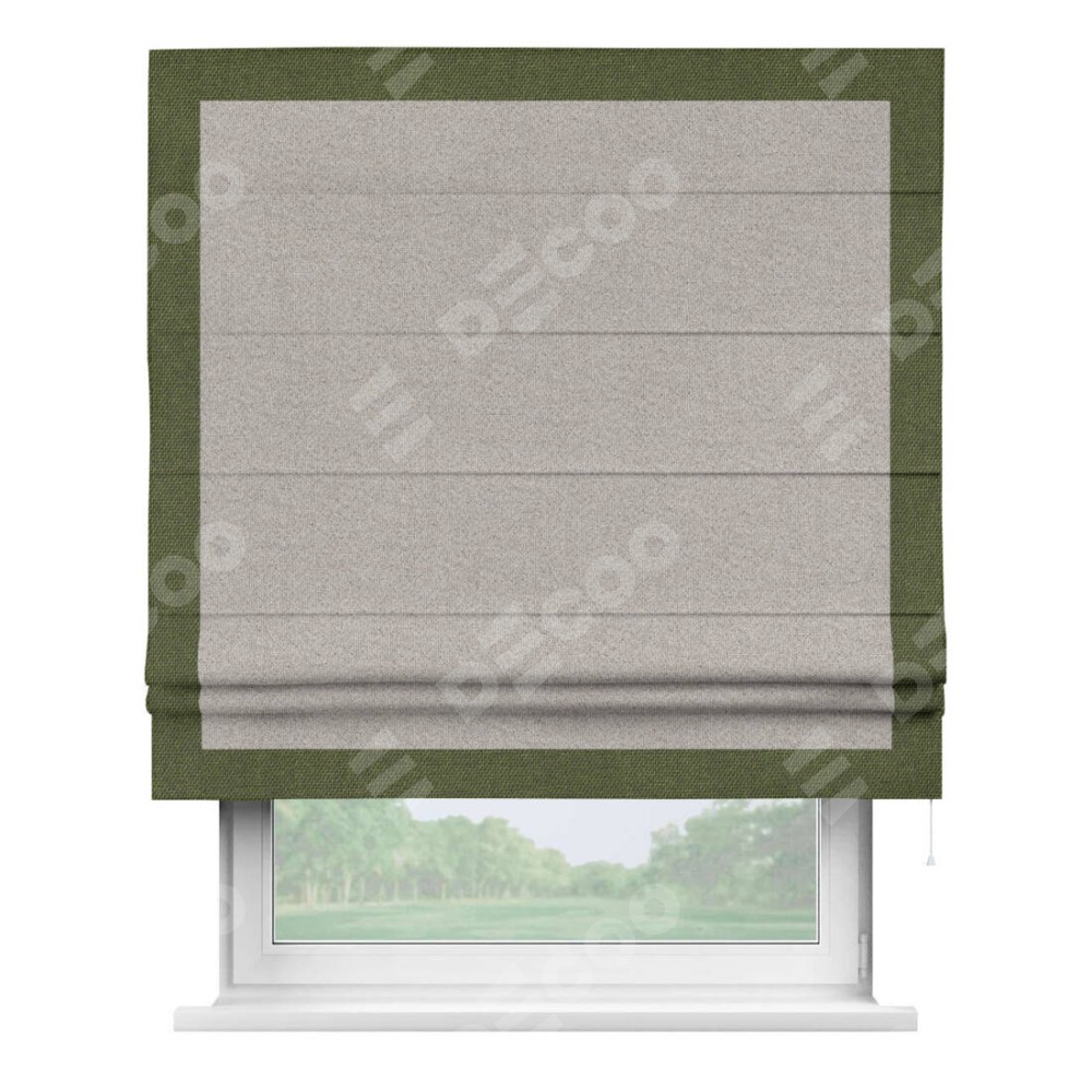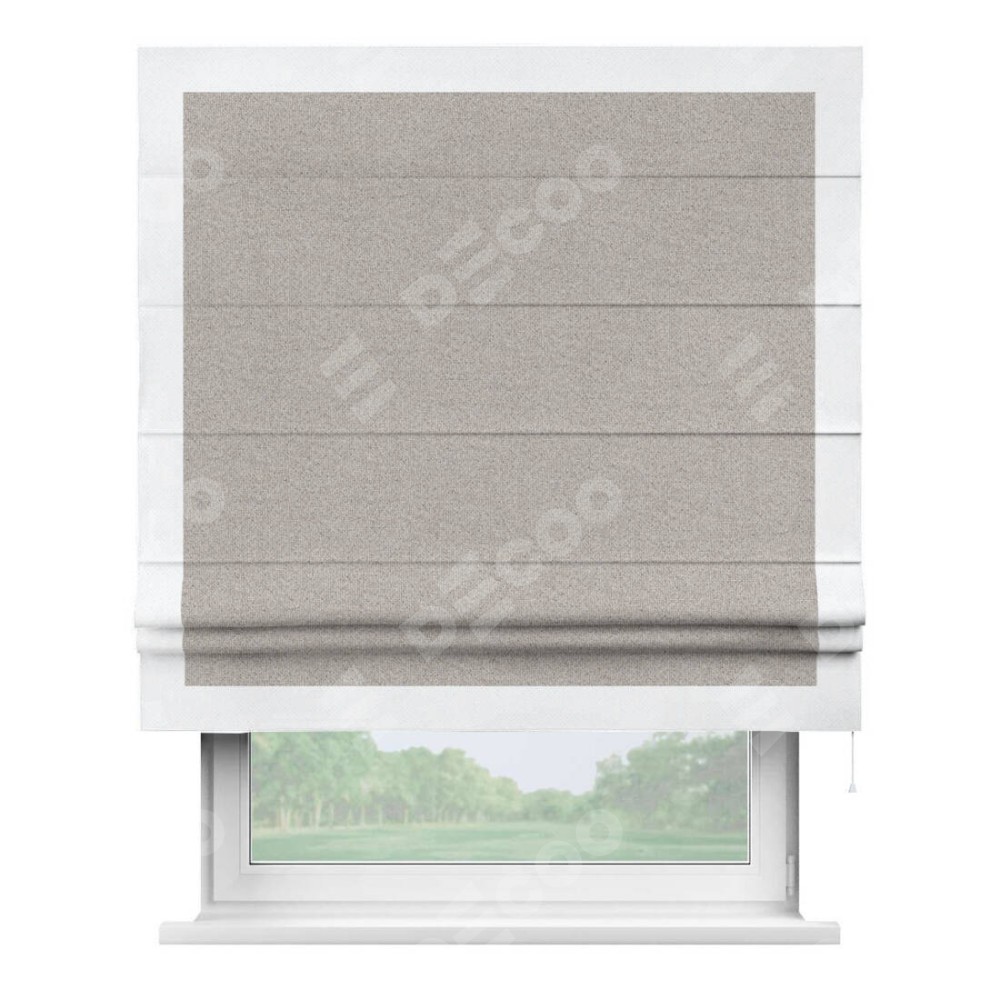 Римская штора «Кортин» для проема, лён димаут серо-бежевый с кантом Чесс
