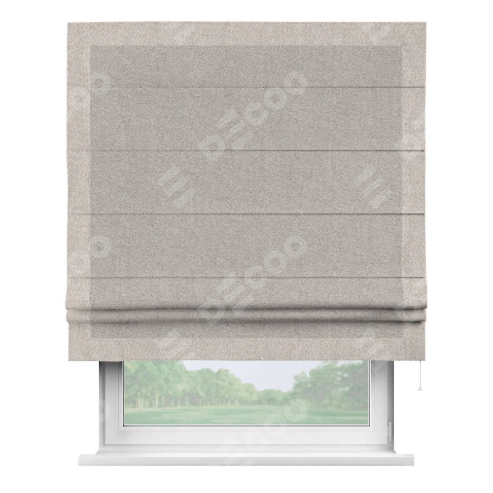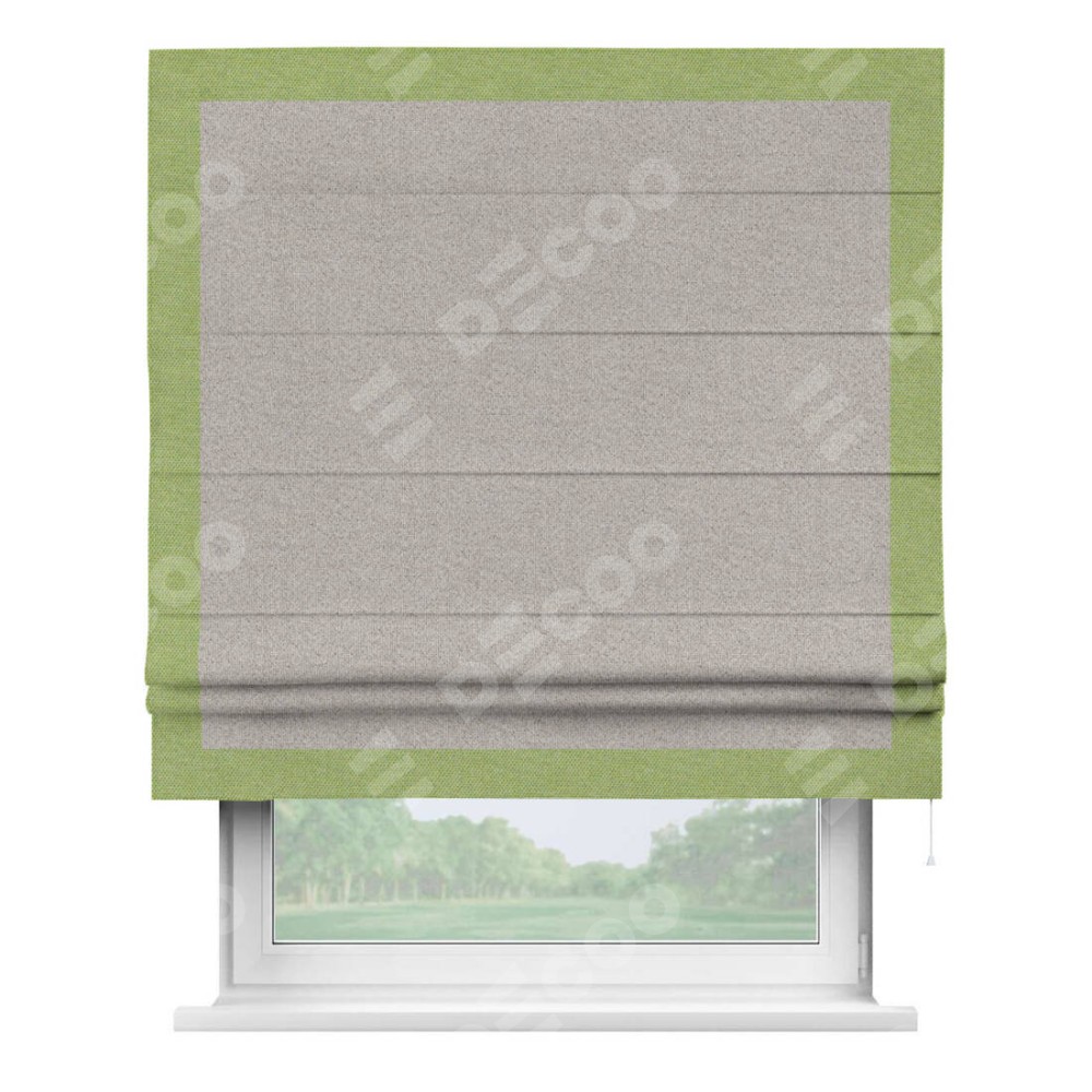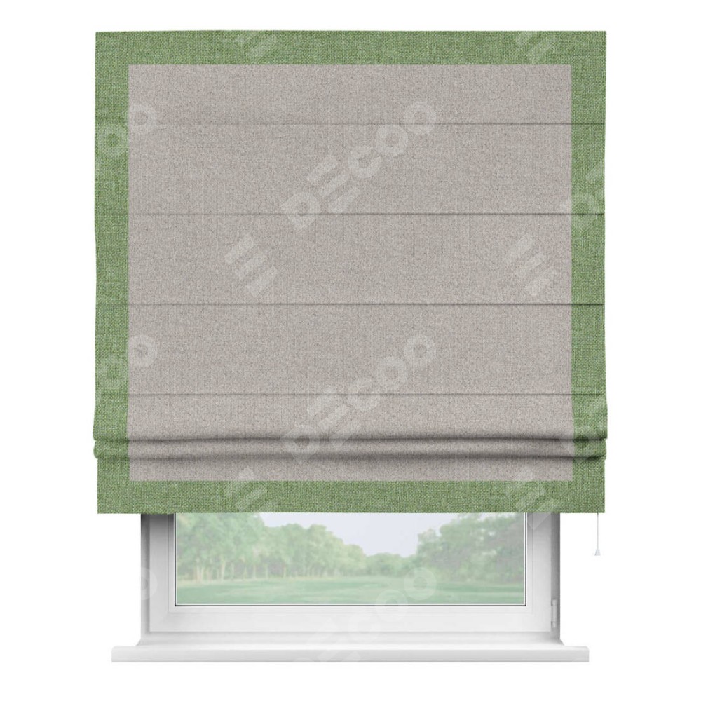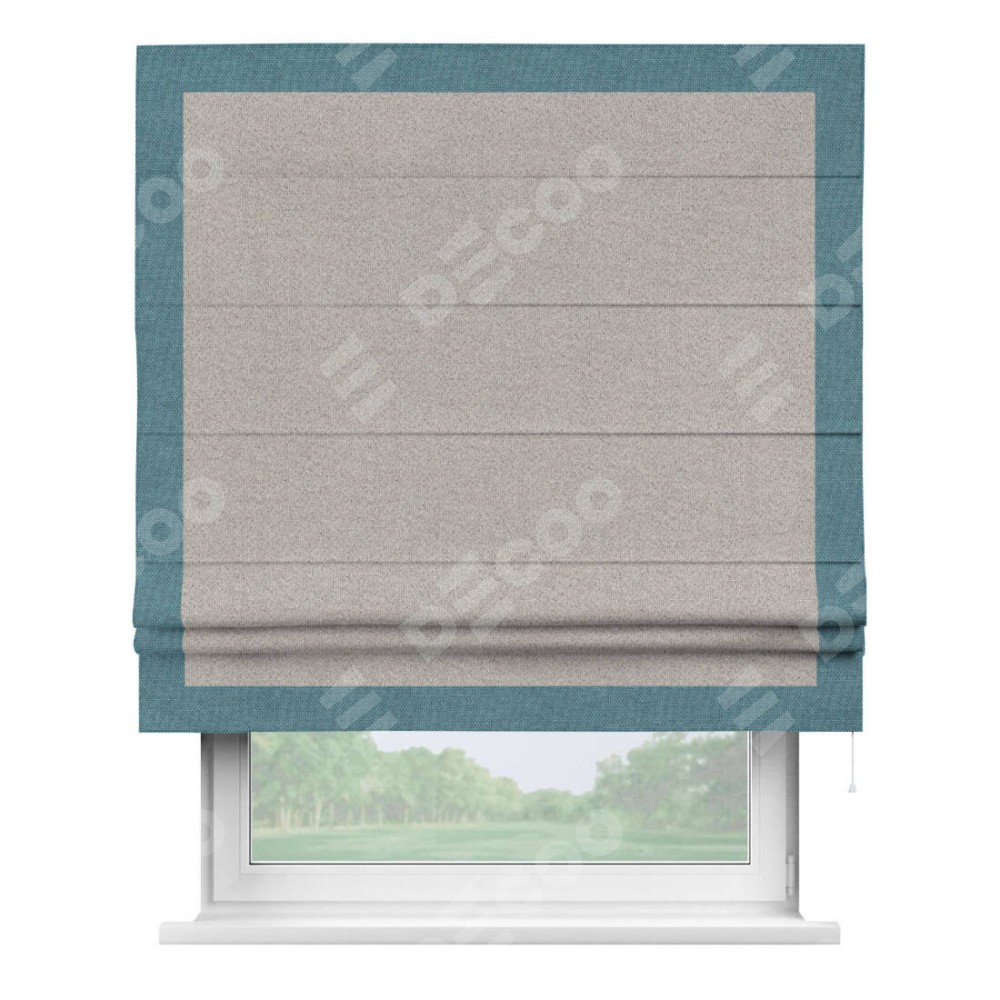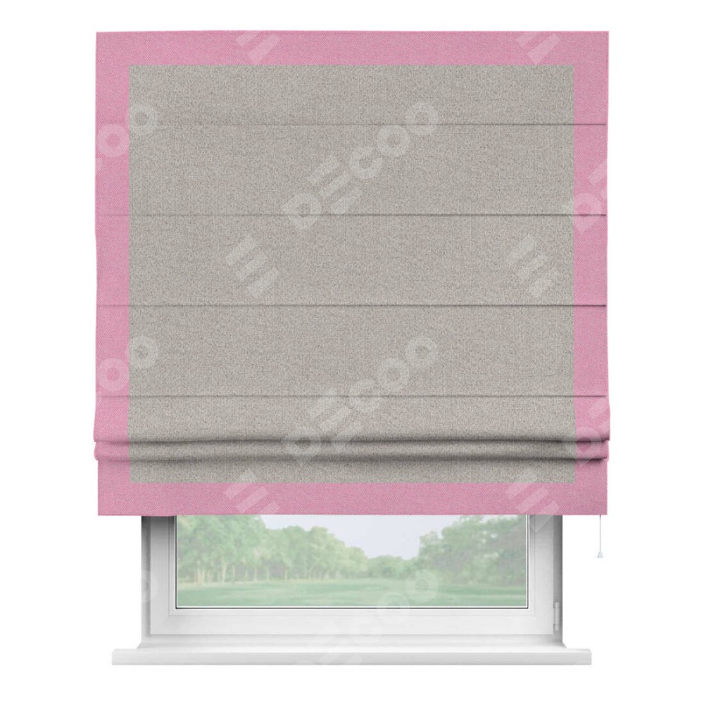 Римская штора «Кортин» для проема, лён димаут серо-бежевый с кантом Чесс