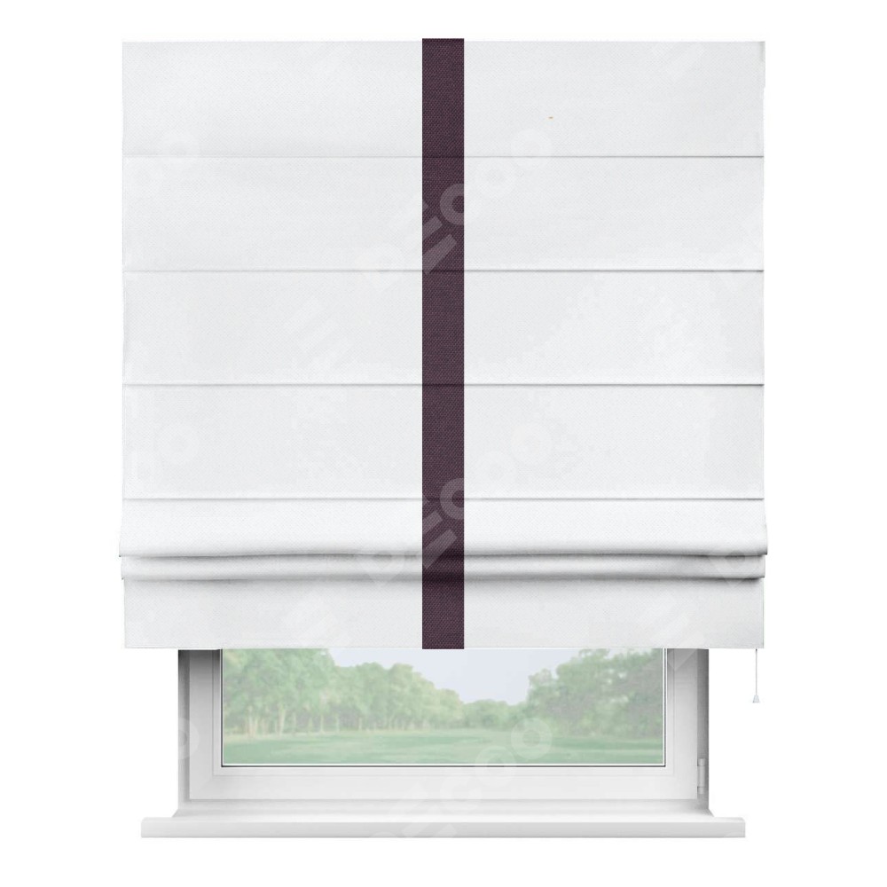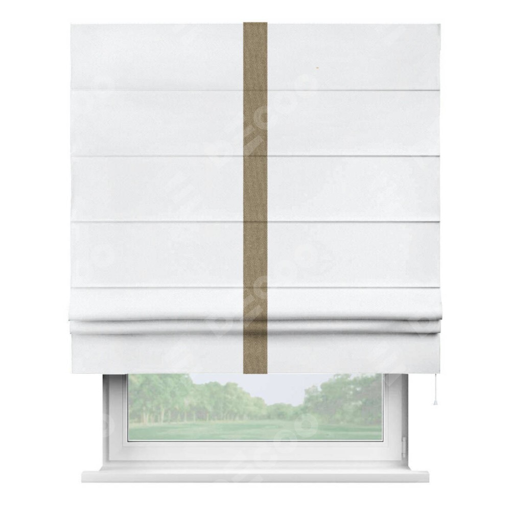 Римская штора «Кортин» для проема, лён димаут белый с кантом Хайвэй