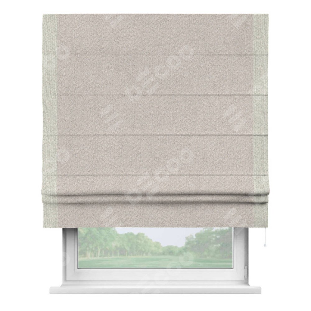 Римская штора «Кортин» для проема, лён димаут бежевый с кантом Стрим Дуо
