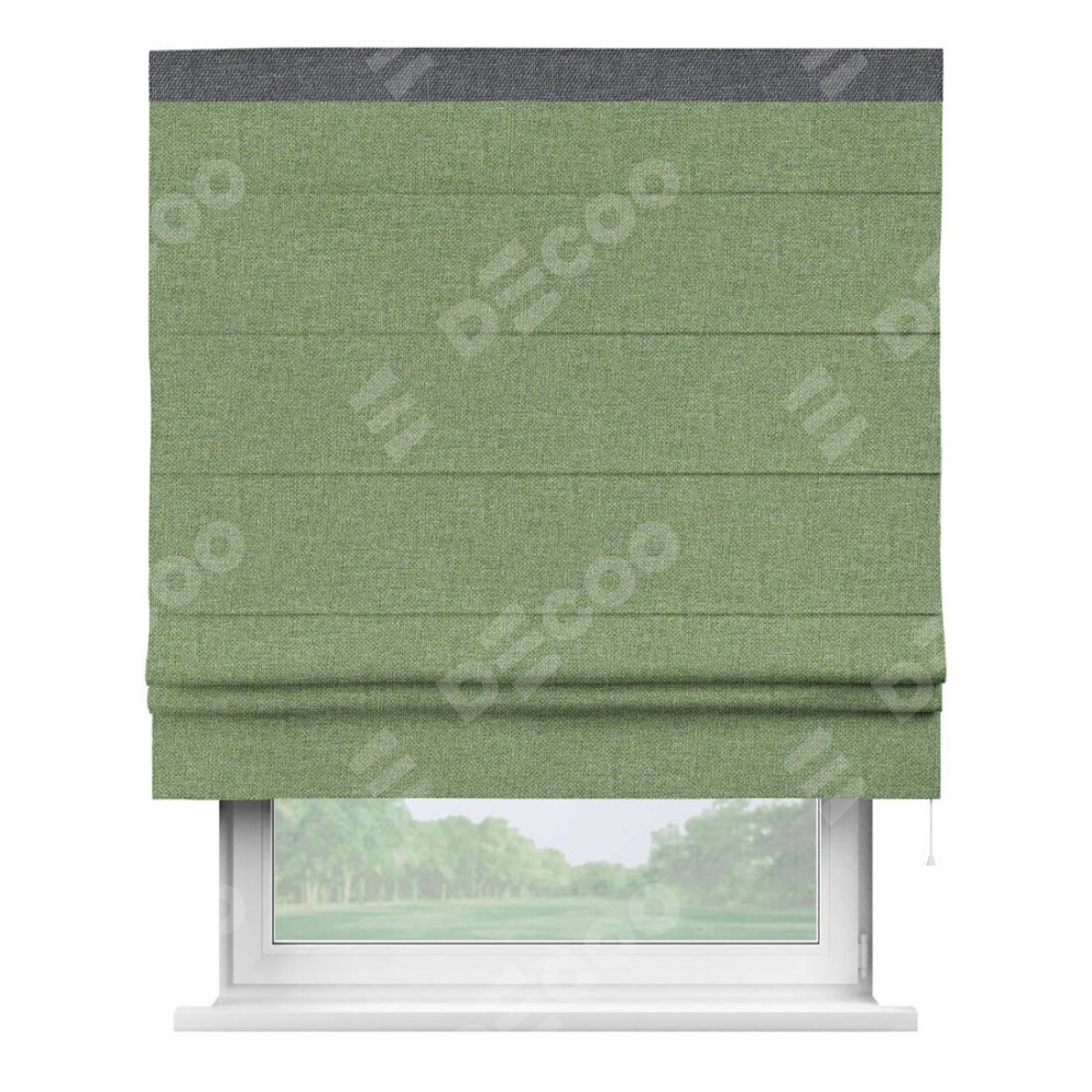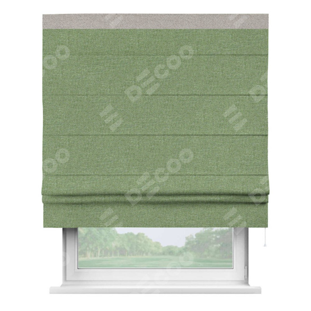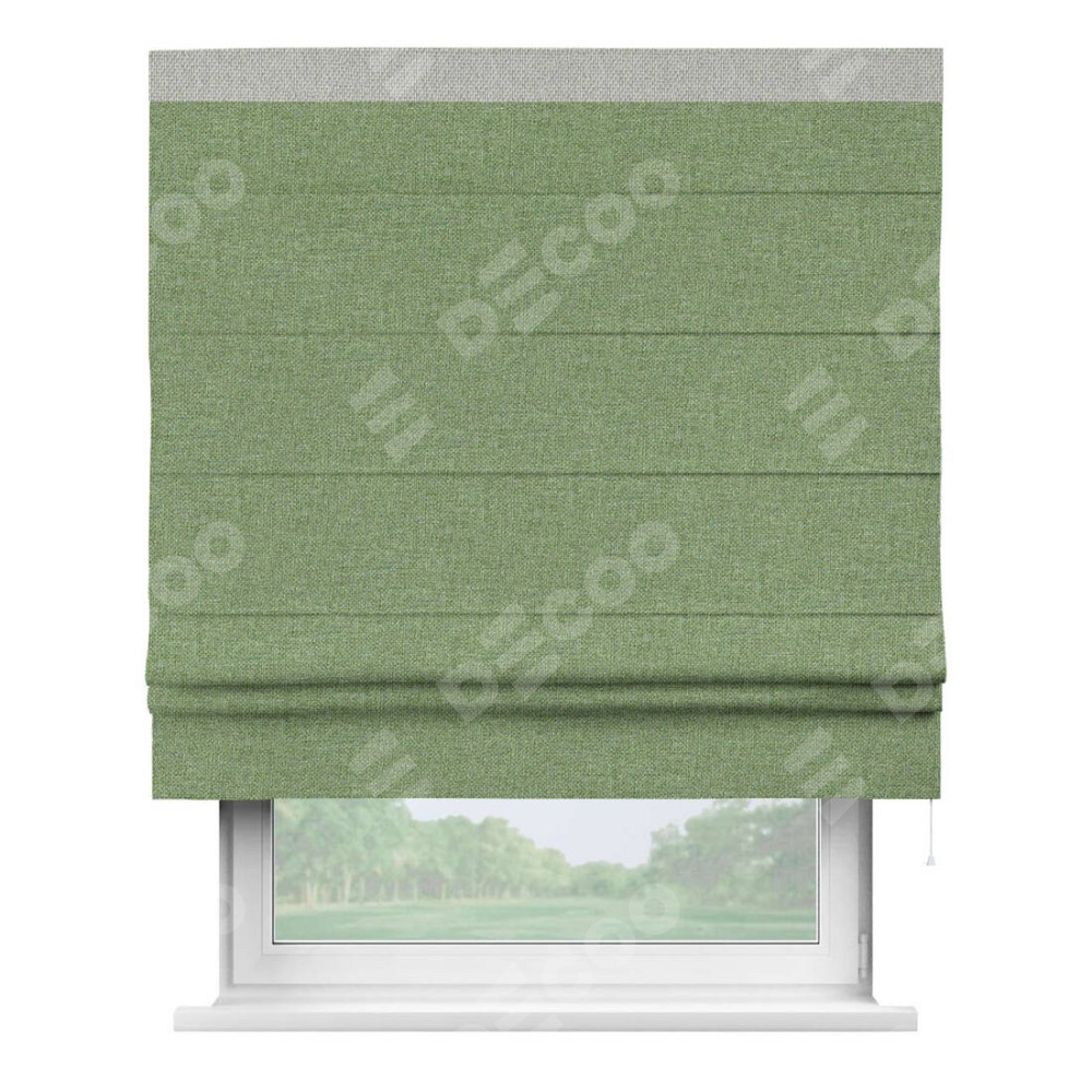 Римская штора «Cortin» для проёма, лён димаут светло-салатовый с кантом Кинг