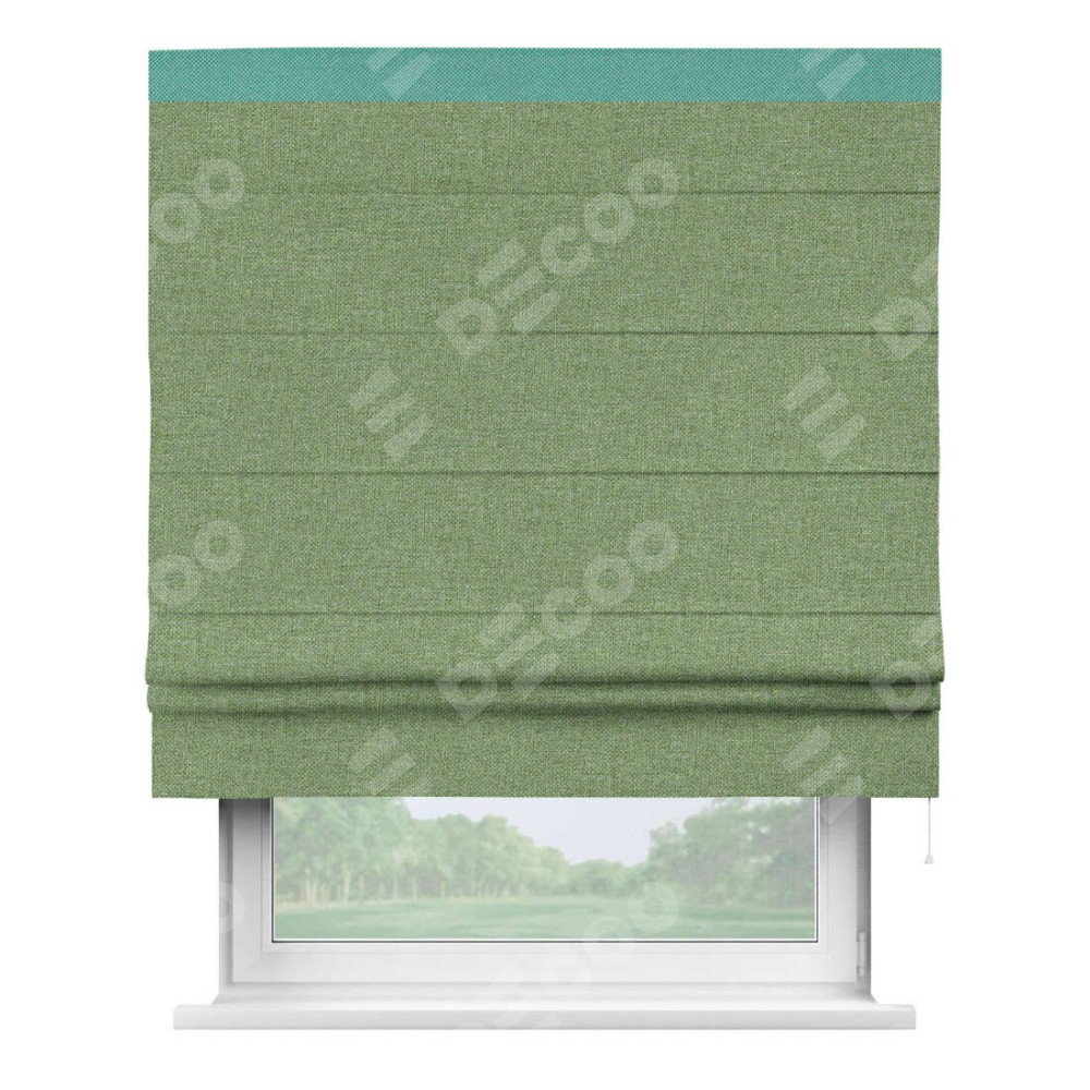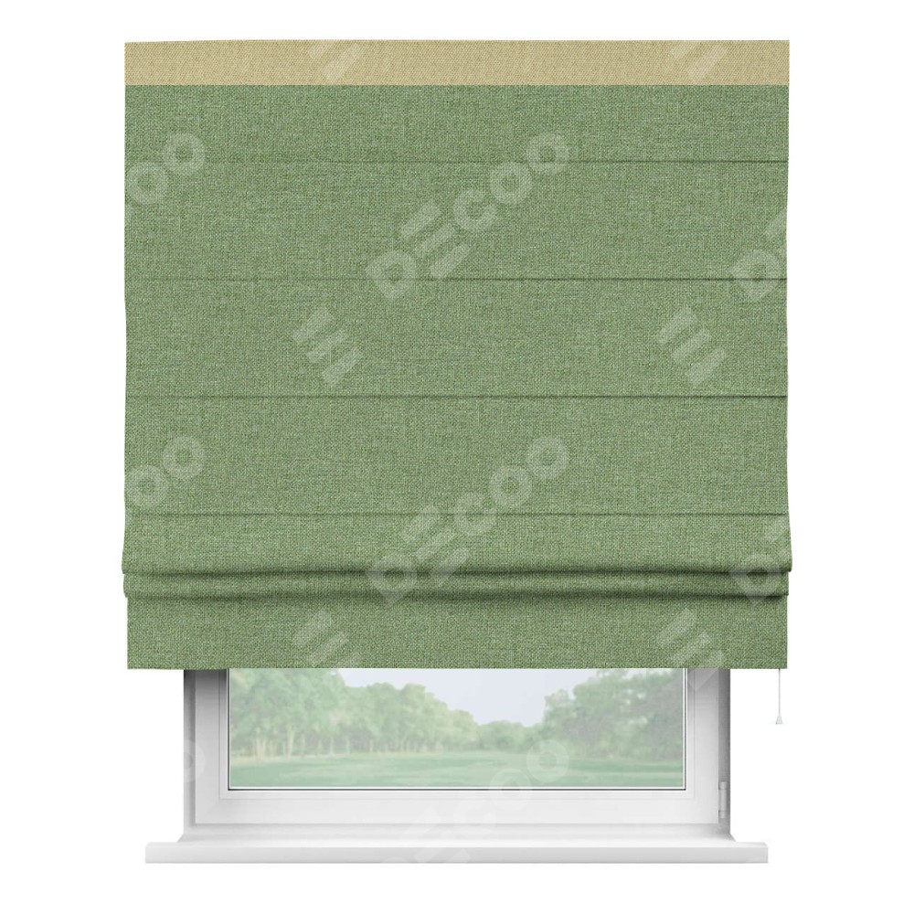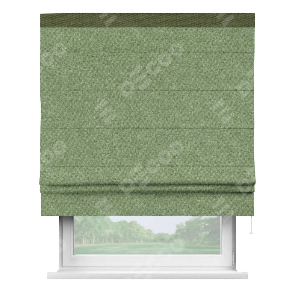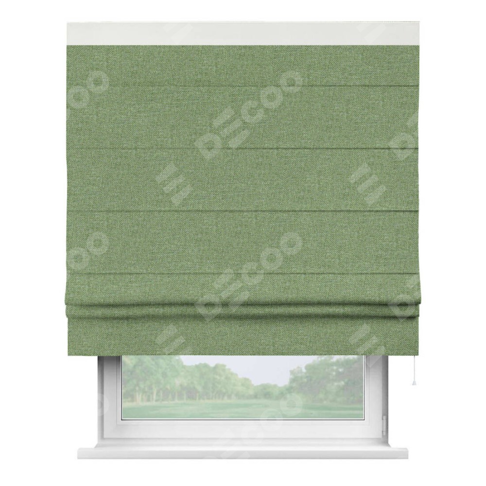 Римская штора «Cortin» для проёма, лён димаут светло-салатовый с кантом Кинг