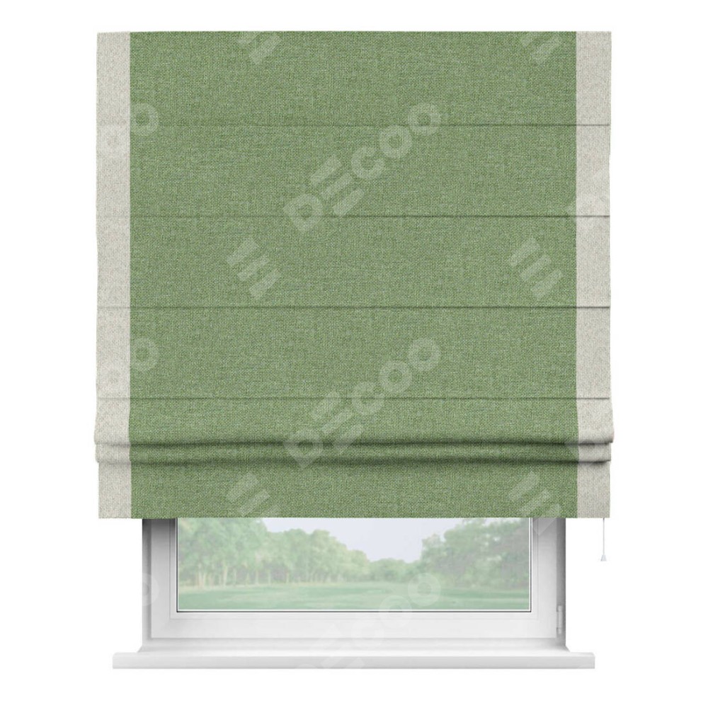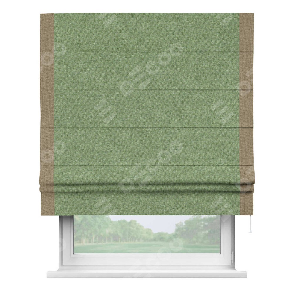 Римская штора «Cortin» для проёма, лён димаут светло-салатовый с кантом Стрим Дуо