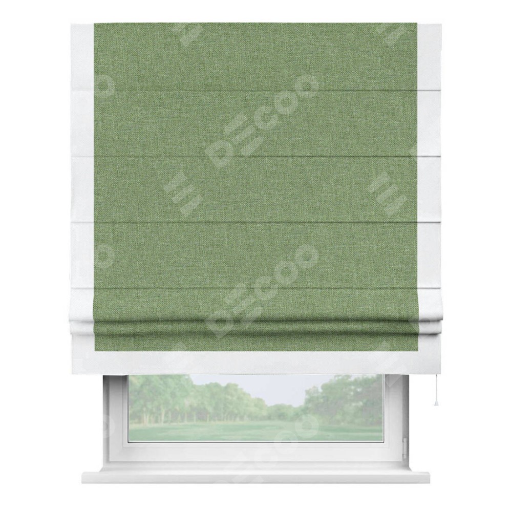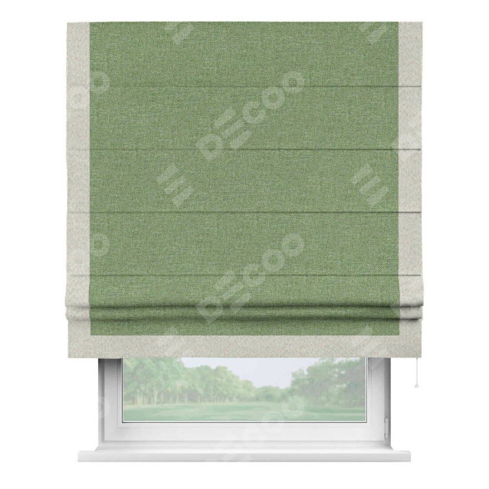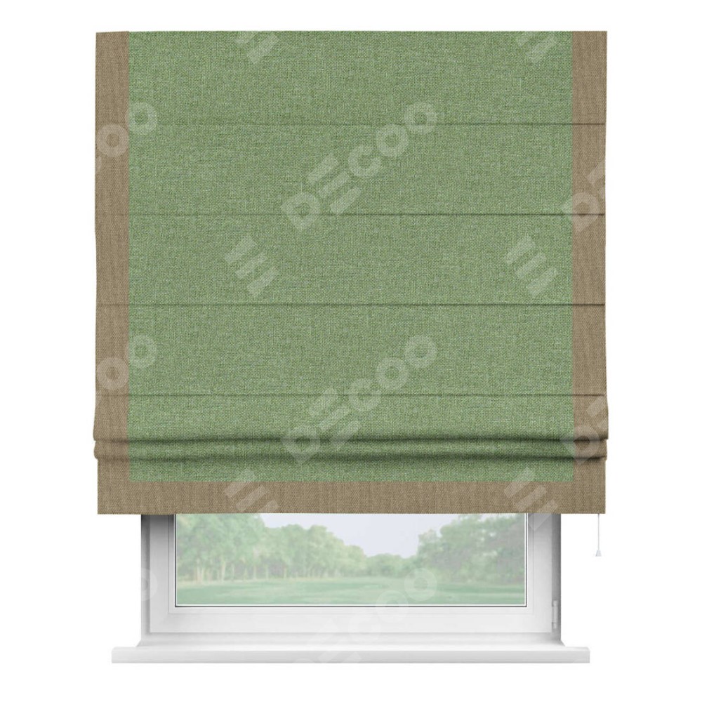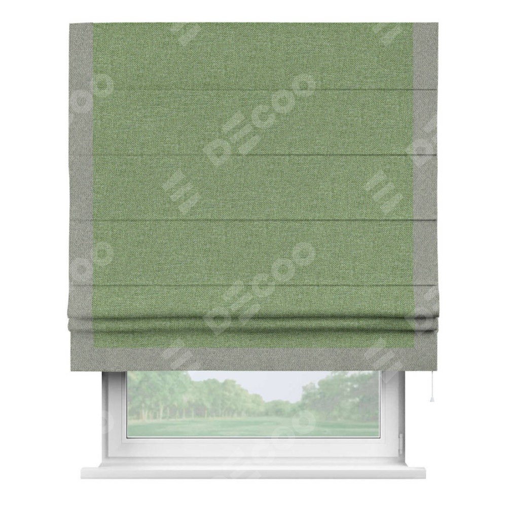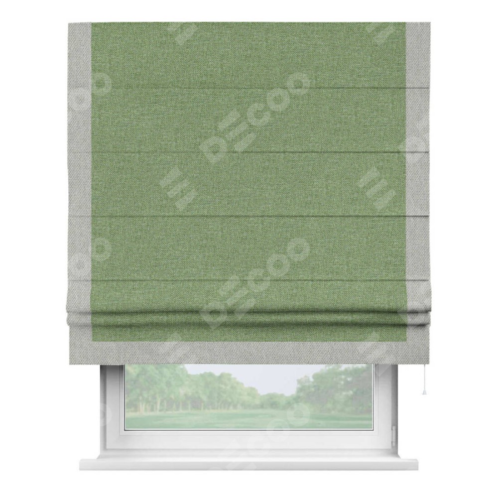 Римская штора «Cortin» для проёма, лён димаут светло-салатовый с кантом Виктория