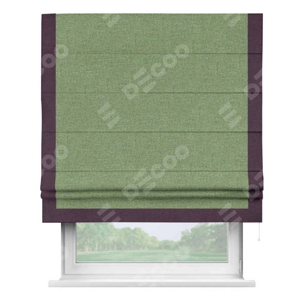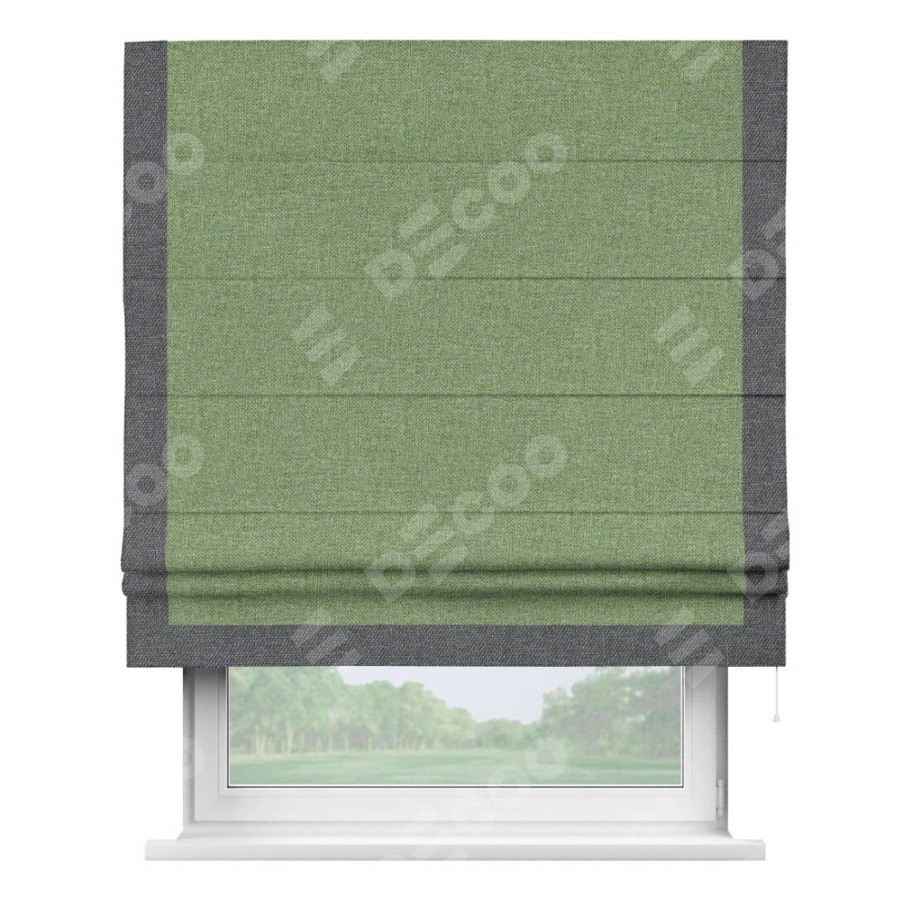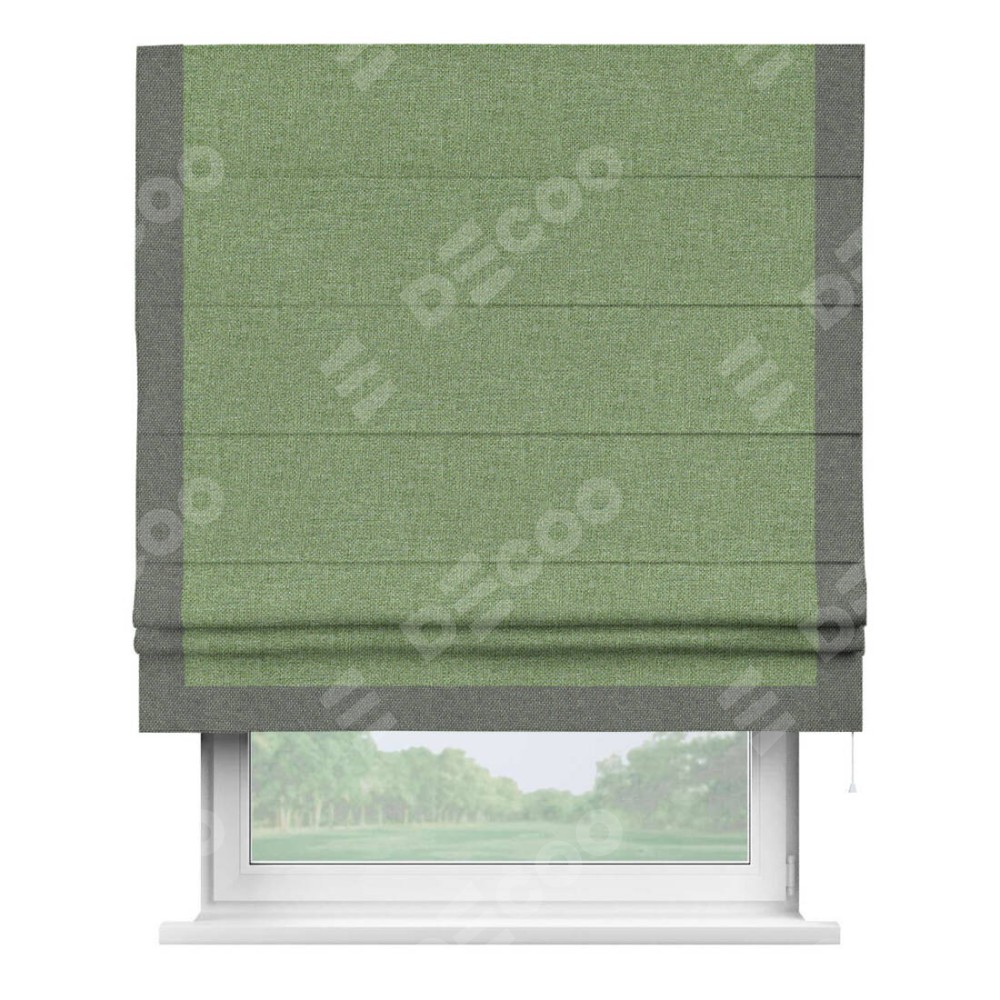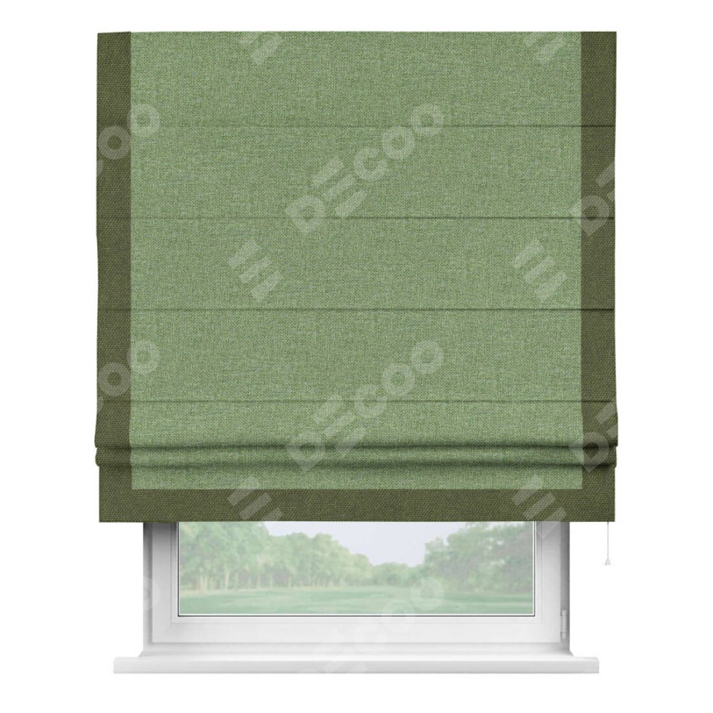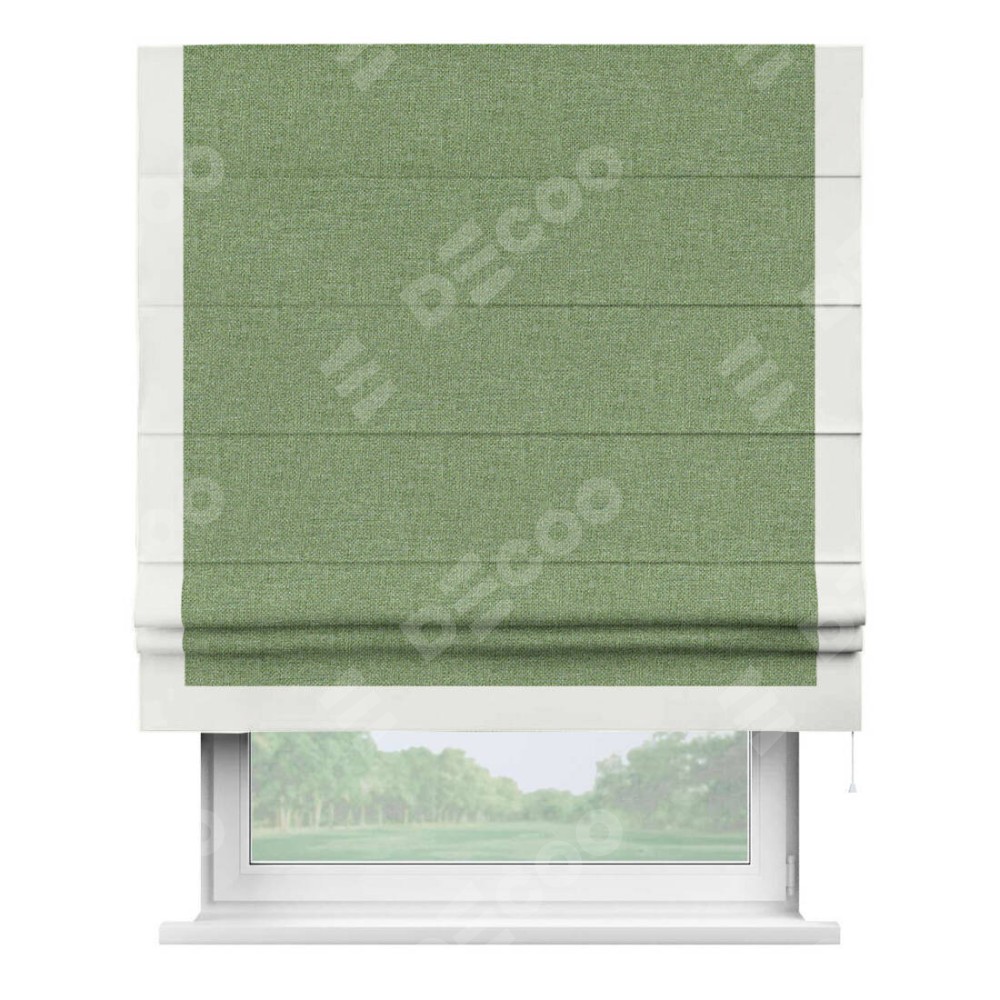 Римская штора «Cortin» для проёма, лён димаут светло-салатовый с кантом Виктория