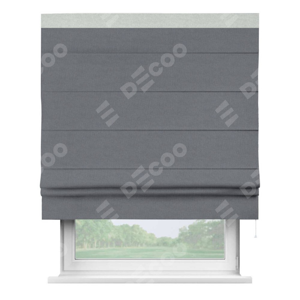 Классическая римская штора производителя «Cortin», пошита из ткани лён блэкаут тёмно-серый, артикул: 139663. Имеет универсальный механизм и подходит для монтажа: на потолок, на стену и в нишу.