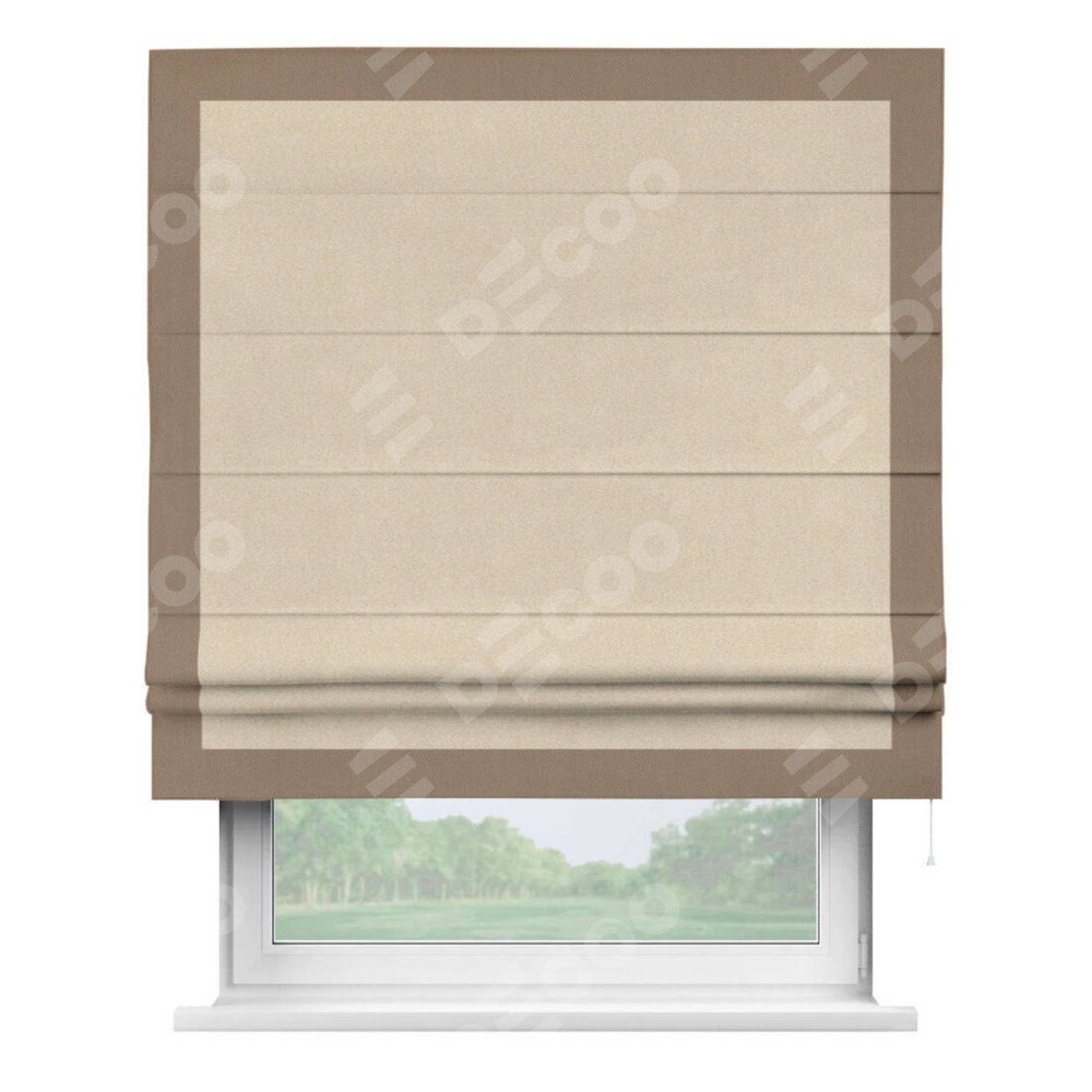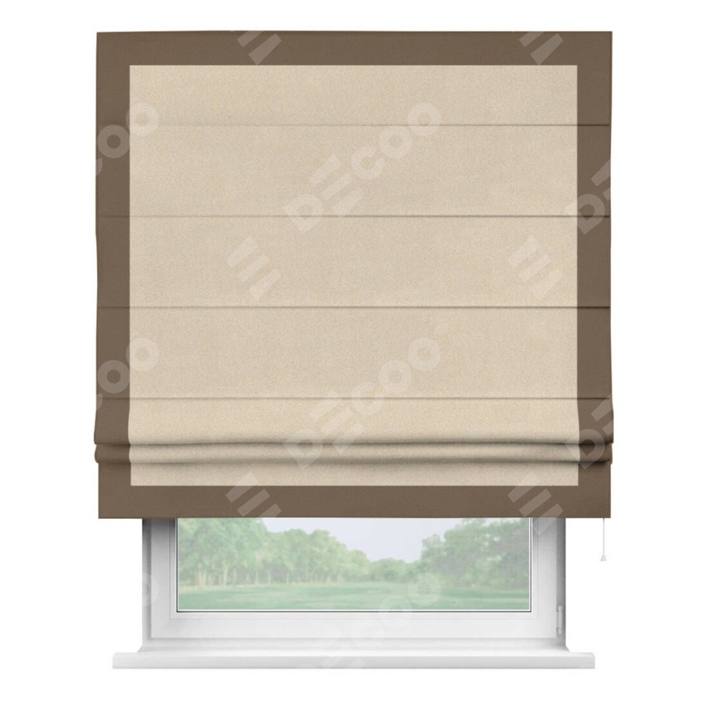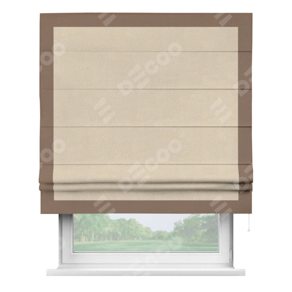 Римская штора «Cortin» для проёма, блэкаут однотонный кофейно-бежевый с кантом Чесс доступна к заказу по по вашим размерам. Её артикул: 30189. Стоимость пошива будет зависеть от размерных характеристик и будет начинаться от 4 519 руб. В интернет-магазине Decoo вы сможете выбрать товар в любых размерных вариациях.