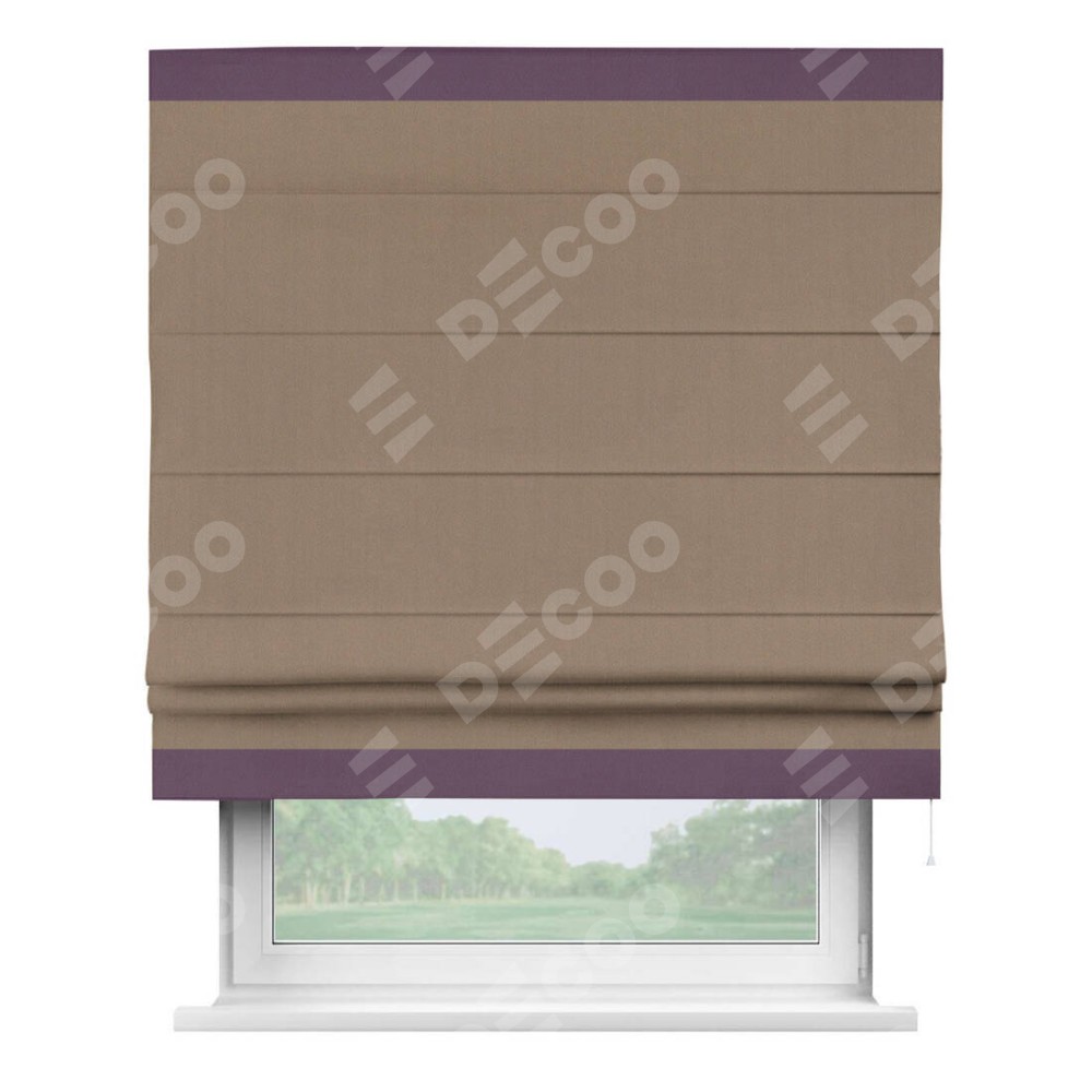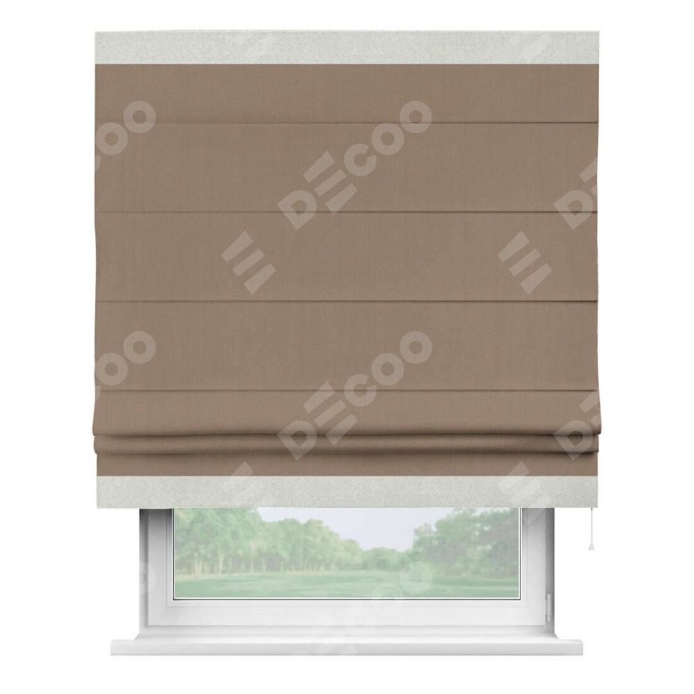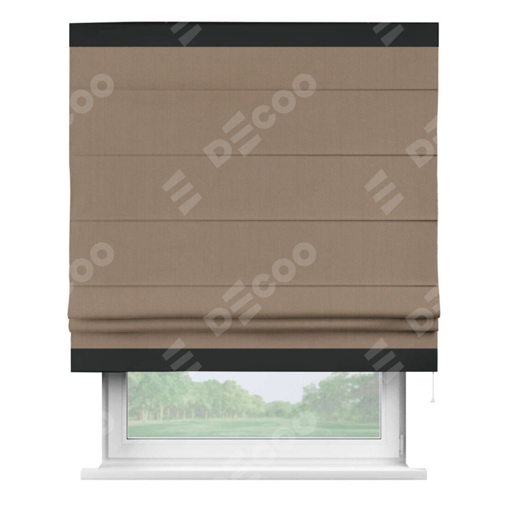 Римская штора «Cortin» для проёма, ткань блэкаут однотонный кофейно-бежевый с кантом Горизонт