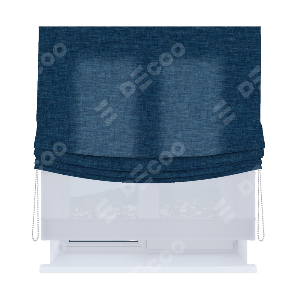 Римская штора «Кортин», лён синий, день-ночь с мягкими складками