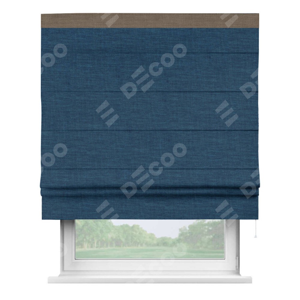 Римская штора «Кортин» для проёма, лён синий, с кантом Кинг