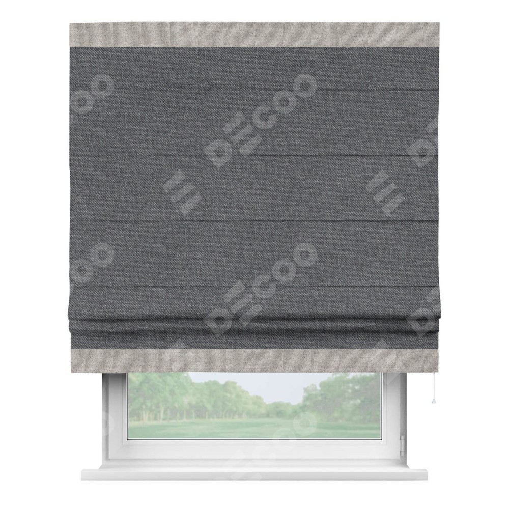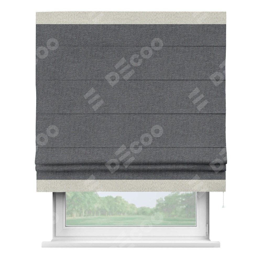 Классическая римская штора производителя «Cortin», пошита из ткани лён димаут графит, артикул: 140644. Имеет универсальный механизм и подходит для монтажа: на потолок, на стену и в нишу.