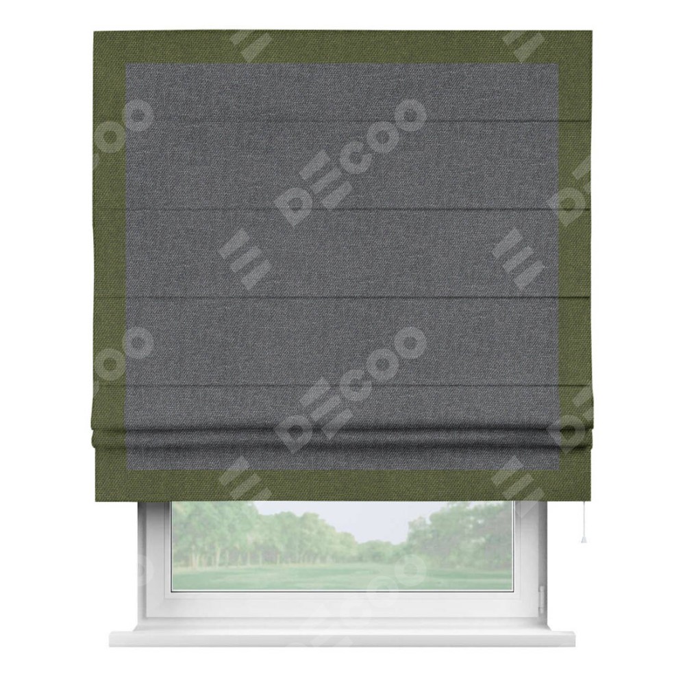 Римская штора «Кортин» для проёма, лён димаут графит с кантом Чесс