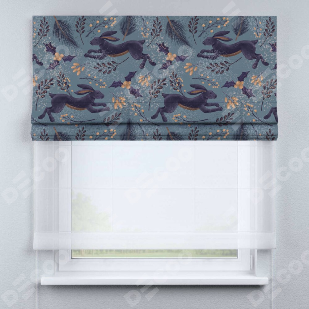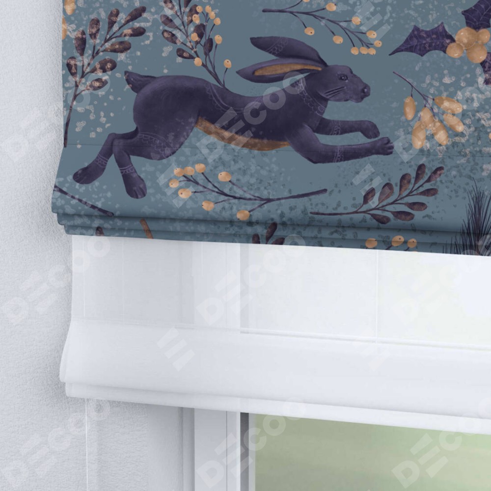 Римская штора «Кортин» день-ночь «Дарк арт зайцы»