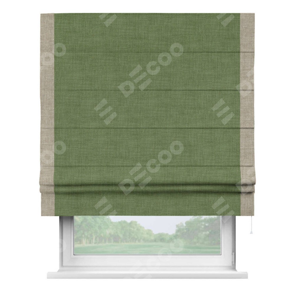 Римская штора «Кортин» для проёма, лён зелёный, с кантом Стрим Дуо