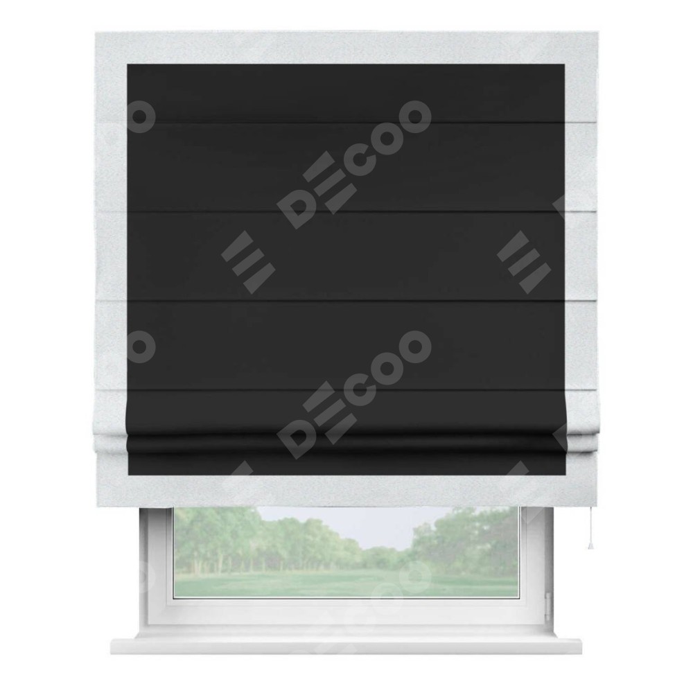 Римская штора «Cortin» для проёма, блэкаут однотонный черный с кантом Чесс